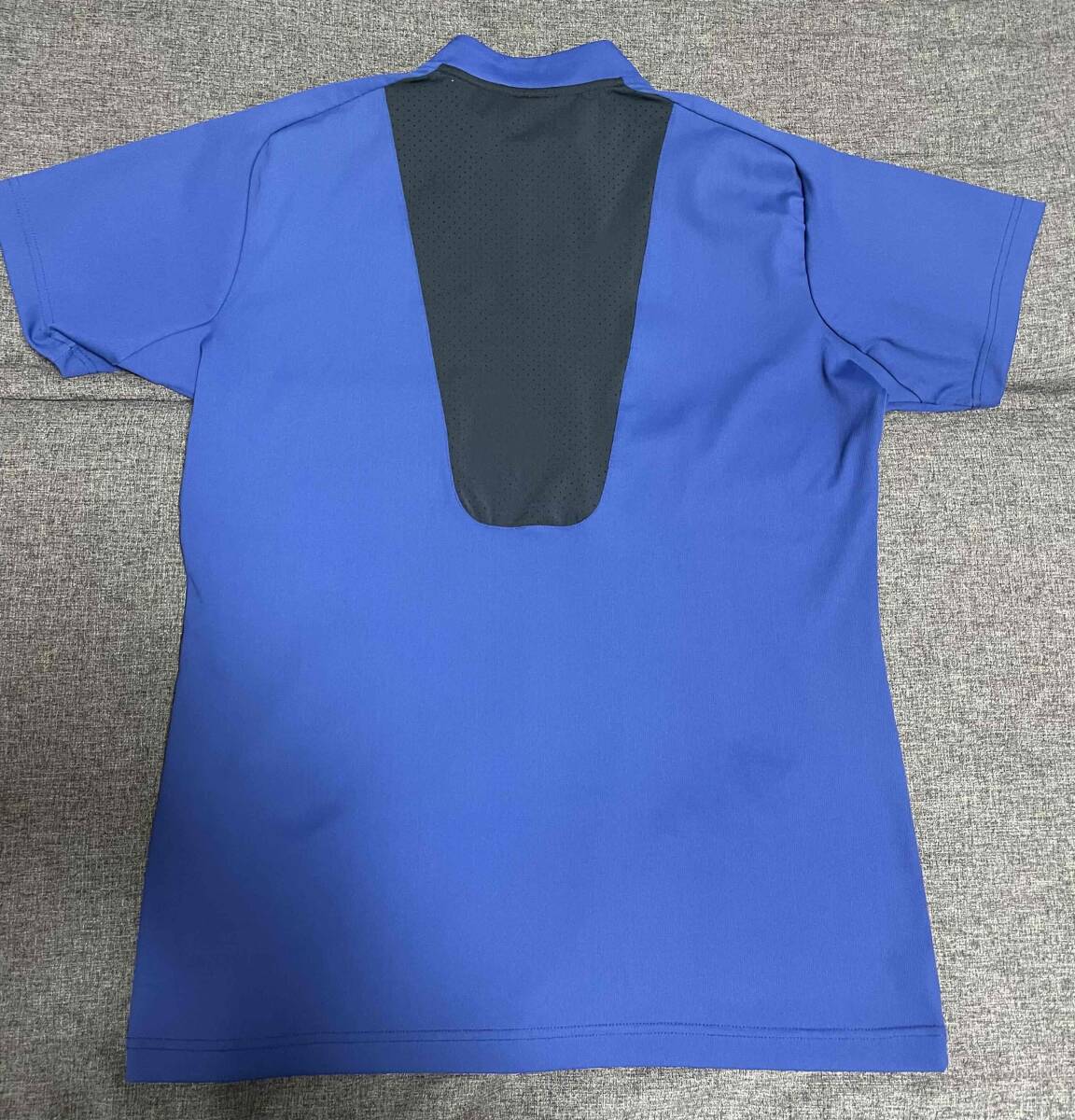 縦横2WAYストレッチのピケ素材をベースに背面に伸縮性の高いパンチングメッシュを大胆に使用し、通気性を持たせたジップスタンドカラーショートスリーブシャツ。
