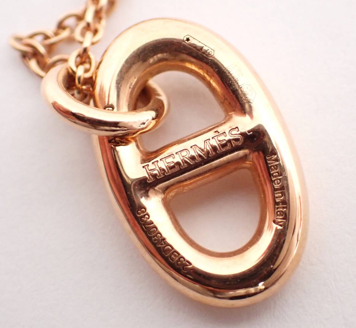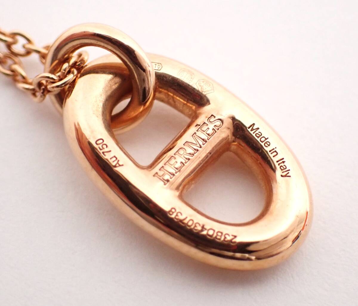 コメント | エルメスのシェーヌダンクルファランドールネックレス 750PG 5.1gになります。定番のシェーヌダンクルペンダントネックレスになり、人気・希少なK18ピンクゴールド仕立てになります。僅かなコキズやスレ等ございますが、特に特筆すべき点もなく、まだまだ長くお使いいただける綺麗なお品です。 |