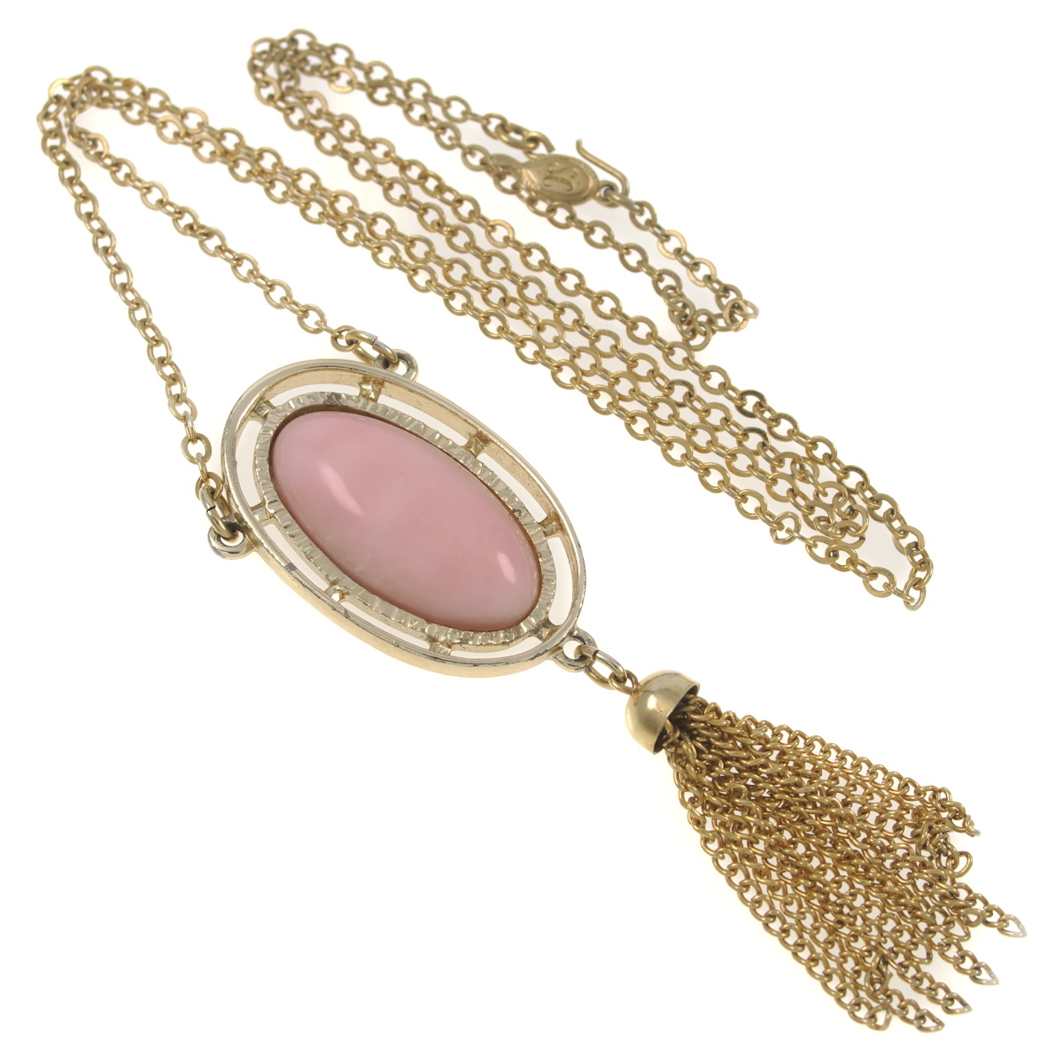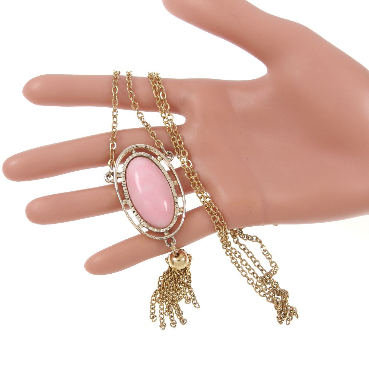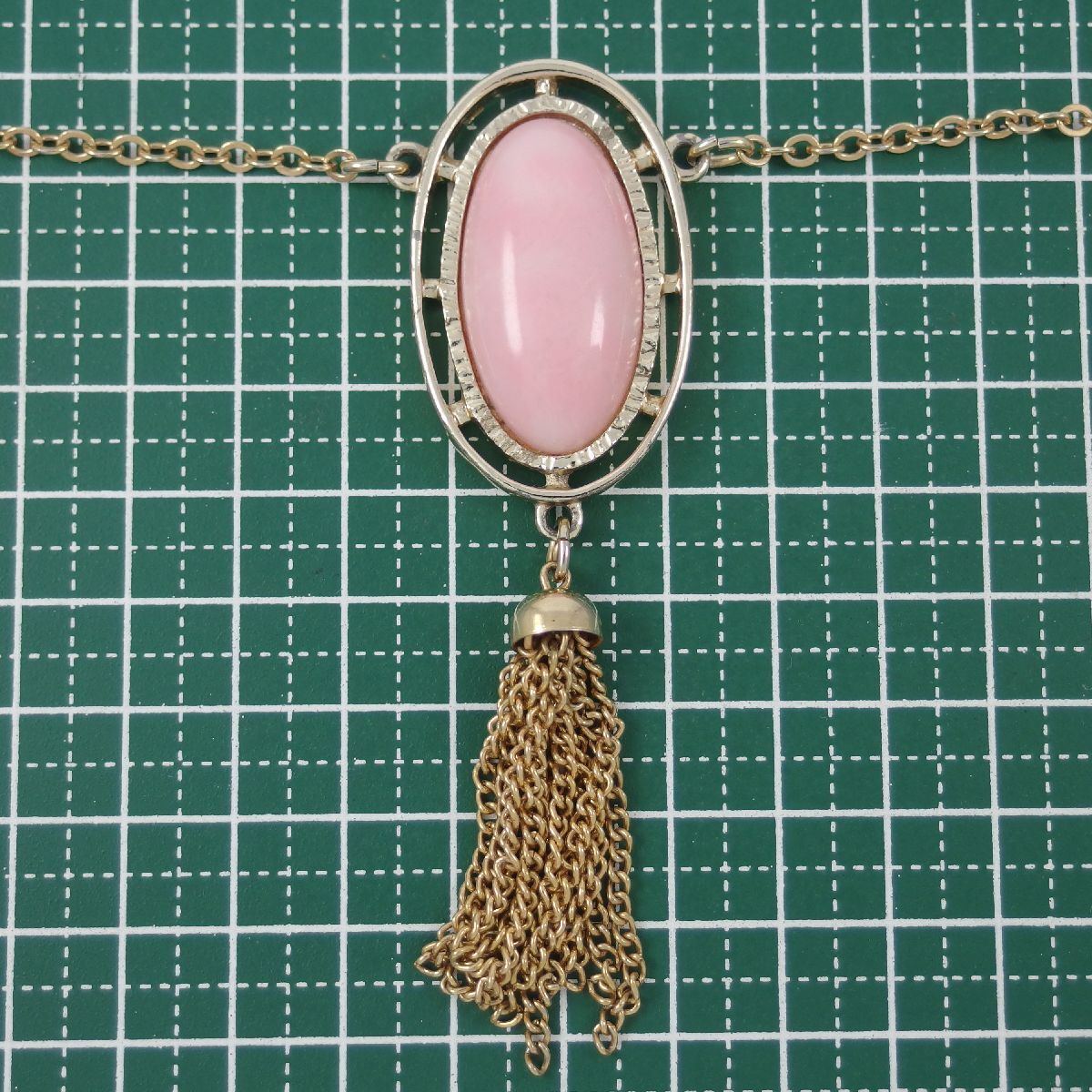 A10504◆【SARAH COVENTRY】◆ ピンク系カボションストーン ペンダント オーバルシェイプ ヴィンテージ ネックレス ◆