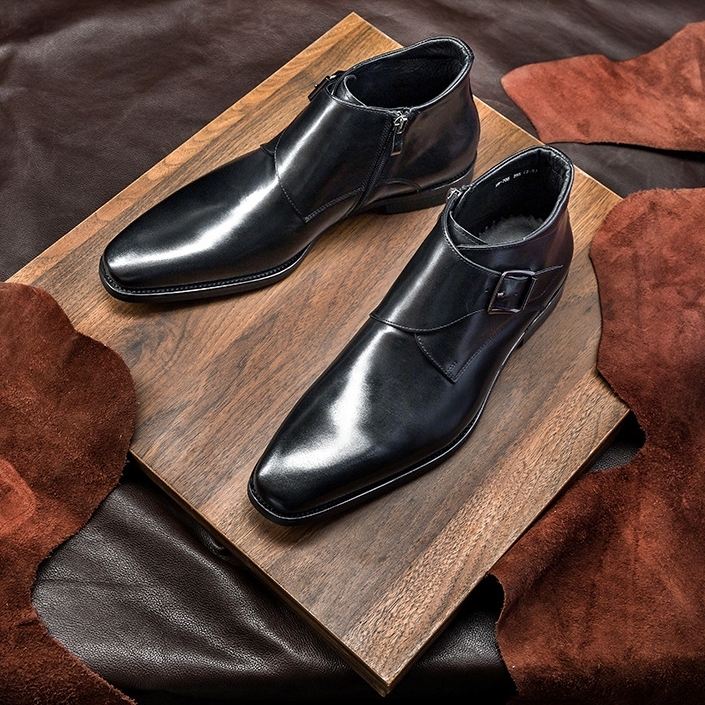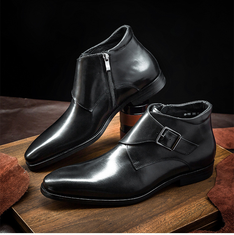 チェルシーブーツ ブーツ メンズシューズ 牛革 ビジネスシューズ イギリス風 革靴 モンクストラップ フォーマル 本革 ブラック24.5cm