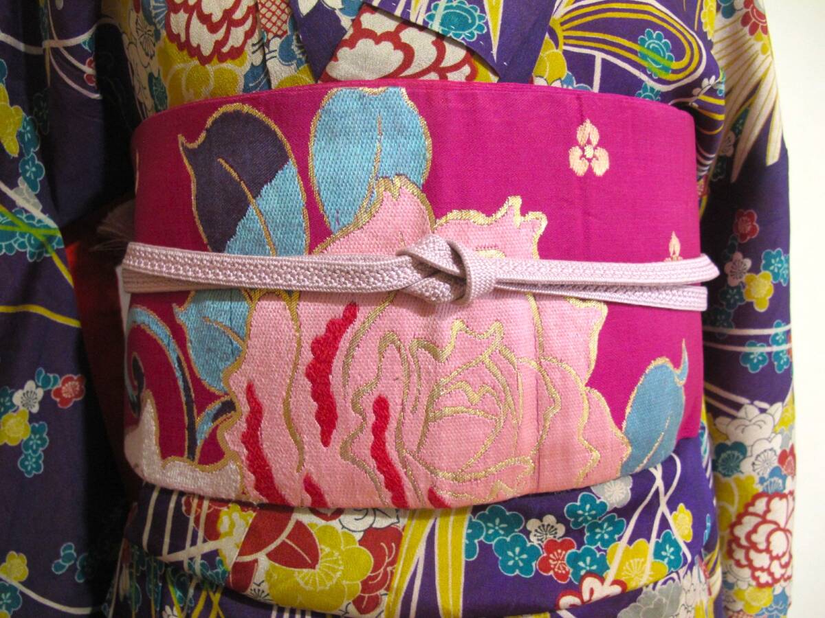 おおよその丈:幅29.8×328(たれ106.5+胴221.5)cm 素材:正絹 お色:紅紫
