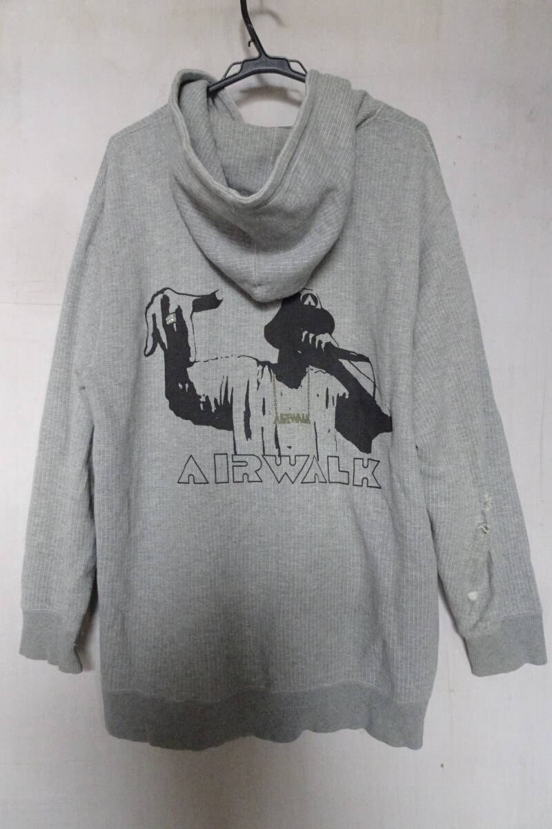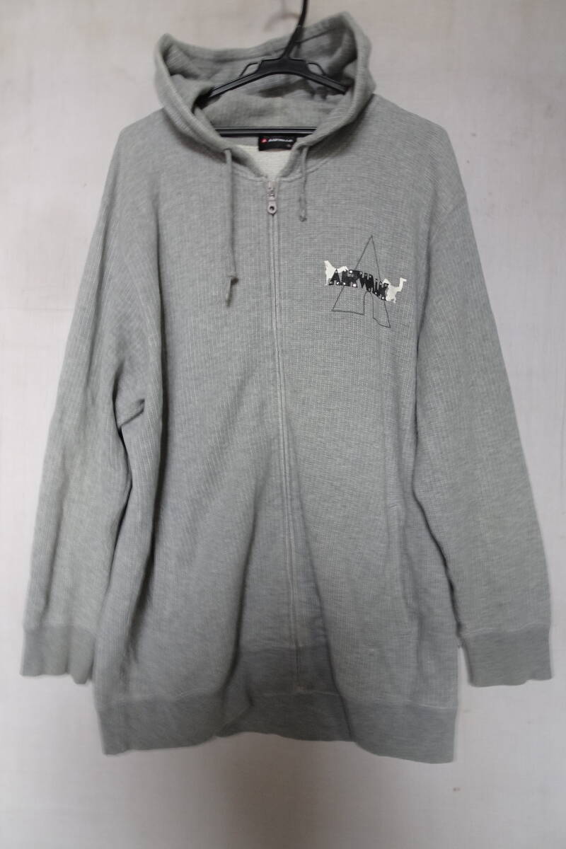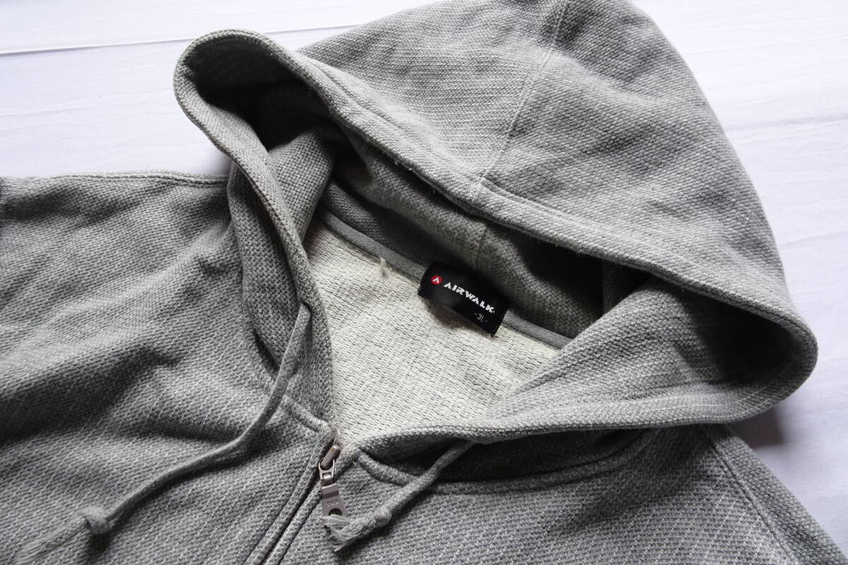 AIR WALK/エアーウォーク/長袖パーカ/スウェット素材/白ストライプ/前ジップアップ/ラインストーン/グレー/3Lサイズ(4/2R7)