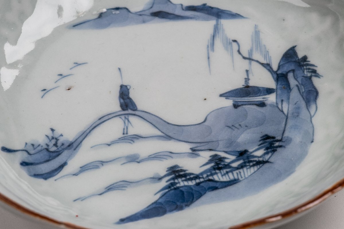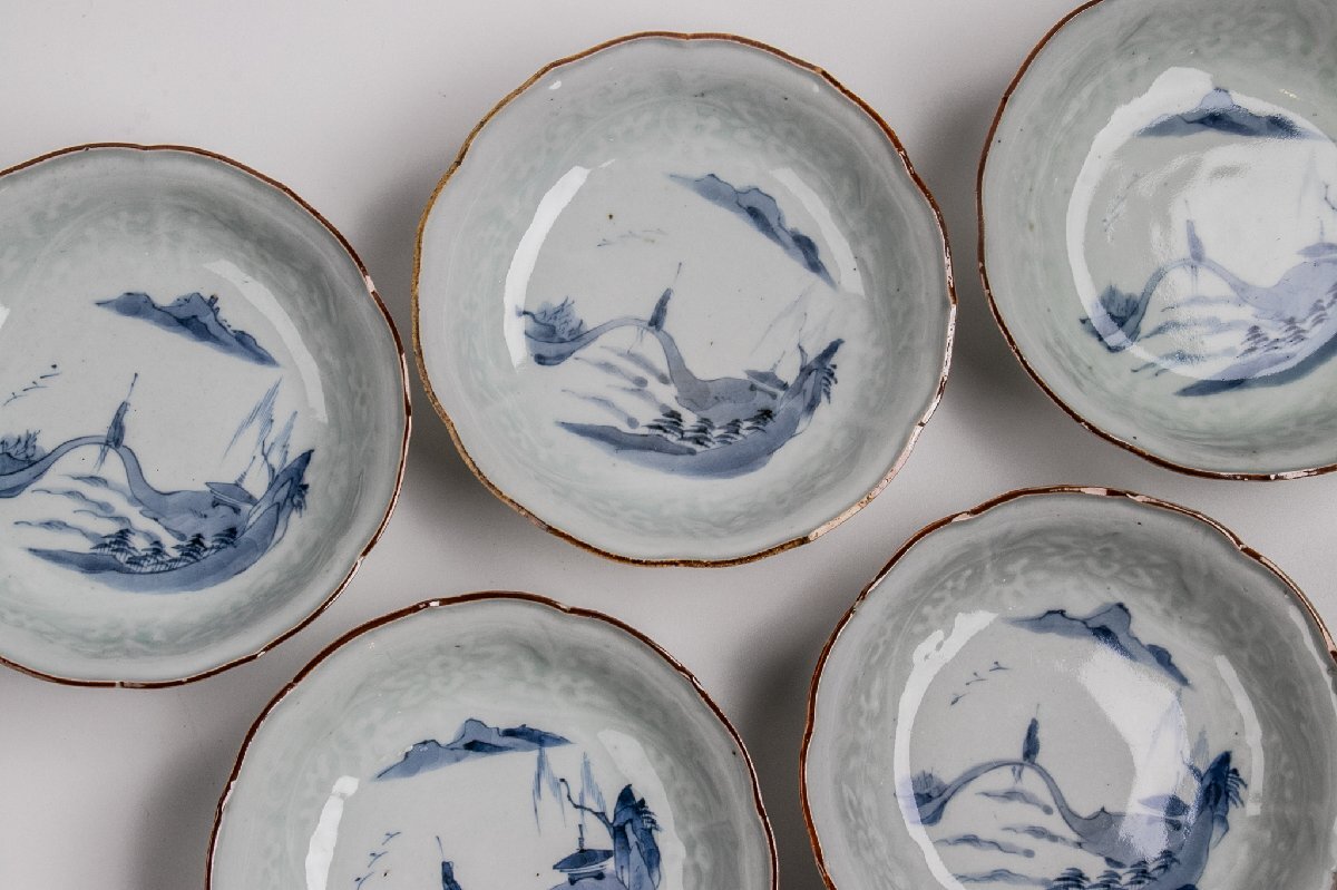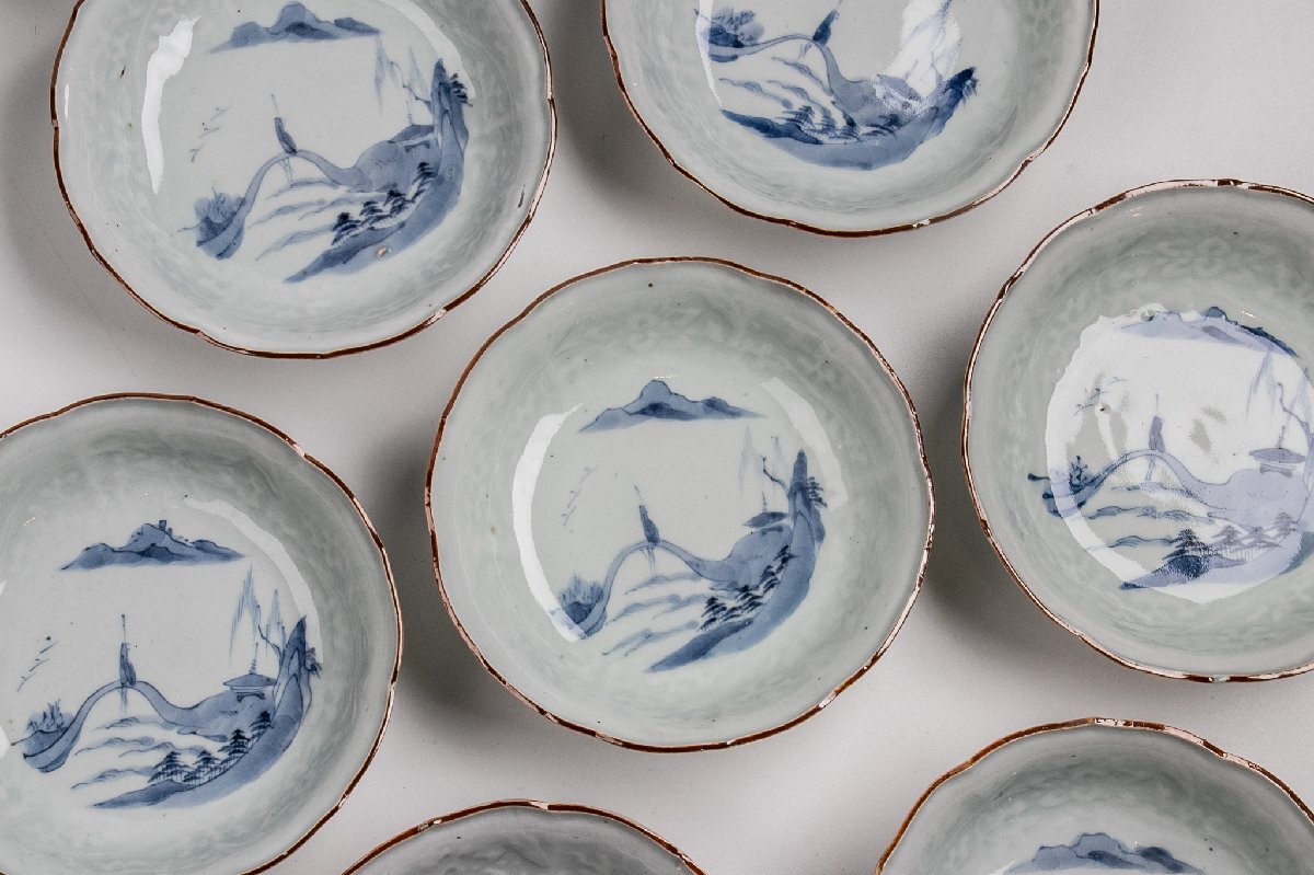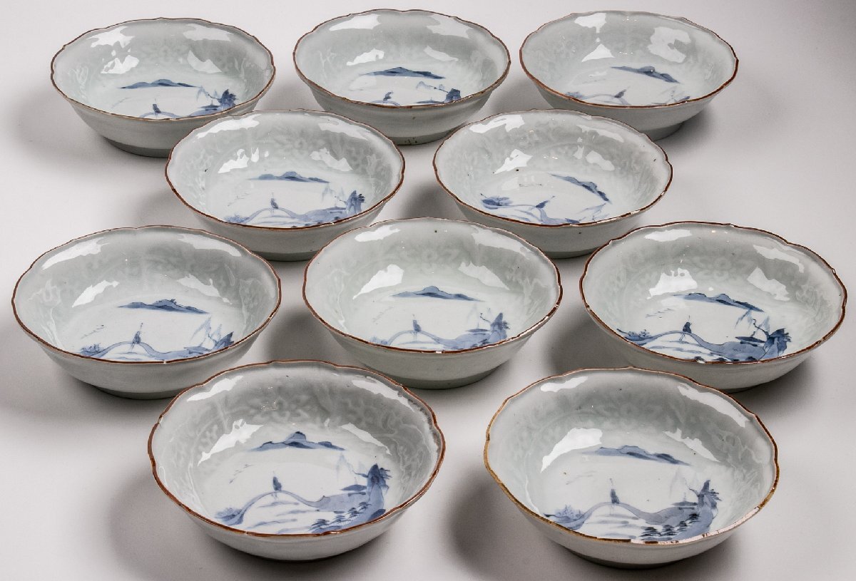 【うつわ】 古伊万里 染付陽刻山水文なます皿 10客 江戸後期 E1599 バラ売り可能です 古美術 骨董 古玩 陶磁器 和食器 懐石 料亭