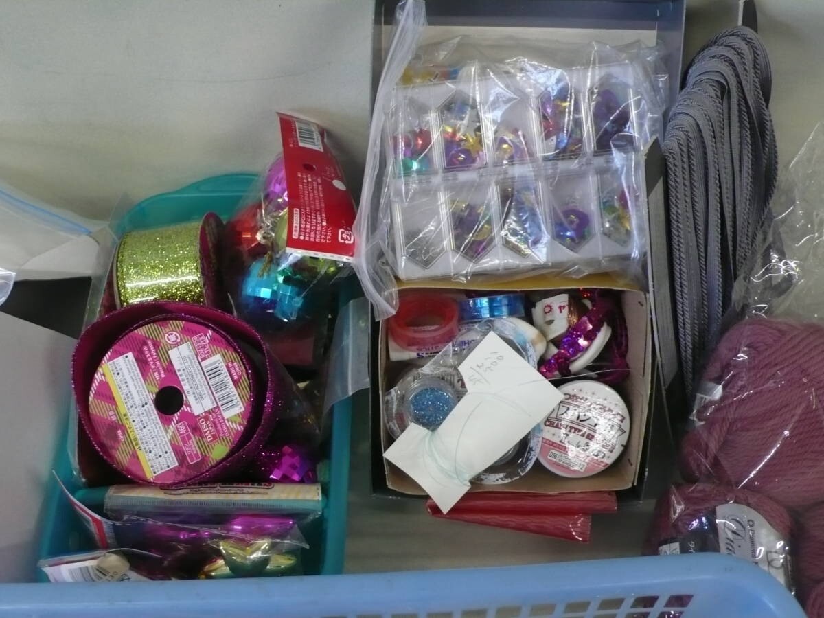 ☆超大量のセットです☆ ●セット内容● ・リボン各種 ・ビーズ各種 ・毛糸各種 ・ミシン糸各種 ・光り物各種 ・その他 ・暗所保管品 ・未使用品/使用済み混在しております。 ・ほとんどのものは状態良好だと思いますが細かな確認はしておりません。 ・現状出品となります(NCNR) ・現状出品のため出品物は画像にあるもので全てとなります。 ・画像にあるもの/状態で全てとなります。 ※モニターにより画像の色合いは現品と若干異なる場合がございます※ ※ノークレーム/ノーキャンセルを条件でお願いします※ ※梱包材料は「リサイクル材」を利用致します。 ※【記載送料をご負担ください】 ※同梱についてはご相談ください※ -------------------------------------------- この他にも趣味から実用品まで豊富に出品しております。 ---------------------------------------------- | ||