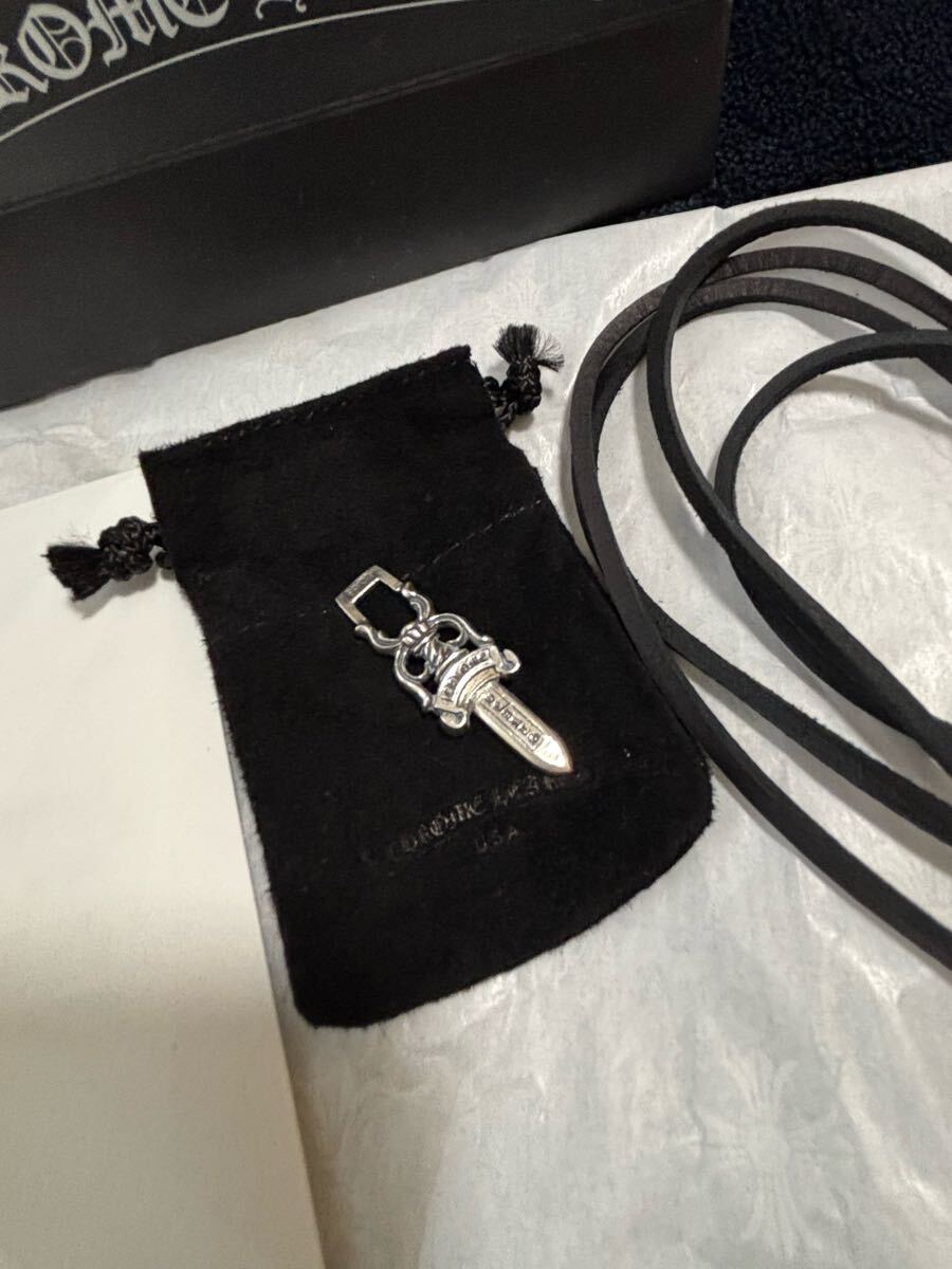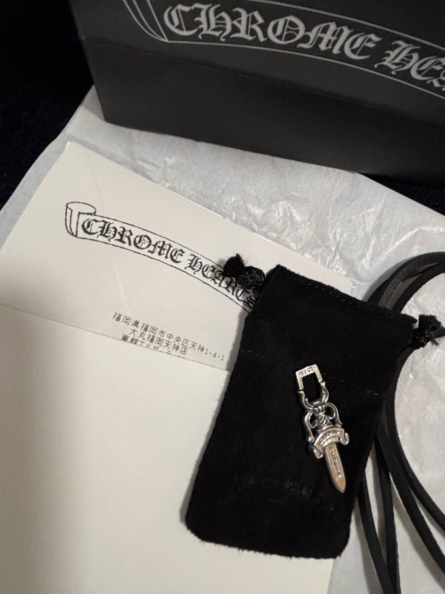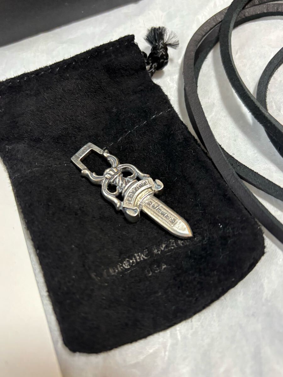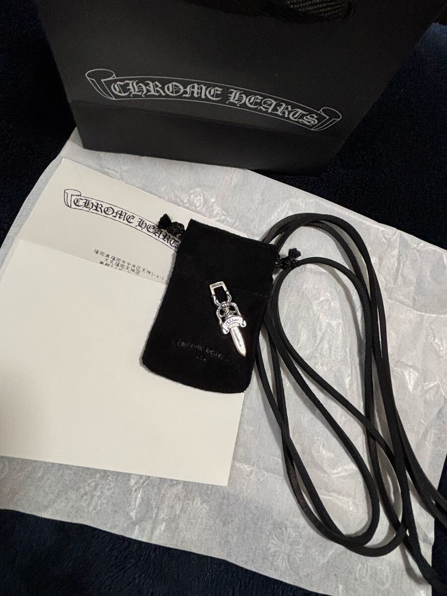 即決!本物!クロムハーツ シルバー ダガー ペンダント 2025年3月購入品 サイズ 縦約44.7 横約14.9 付属品、国内正規品レシート、革ヒモ(約180センチ) クロムハーツ黒紙袋付、シルバーポリッシュクロス付