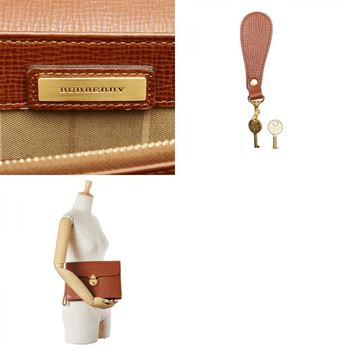 バーバリー ノバチェック セカンドバッグ ブラウン レザー レディース BURBERRY 【中古】