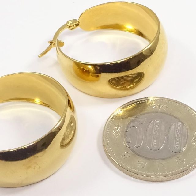 ふっくらと丸くカーブした月甲丸型のフープピアス。