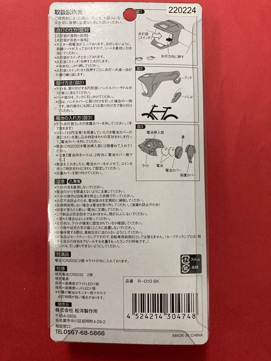 未使用 ♪ 前・後用セット パイン2セットライト LEDライト フロントライト バックライト 自転車ライト R-010 BK(管理68)