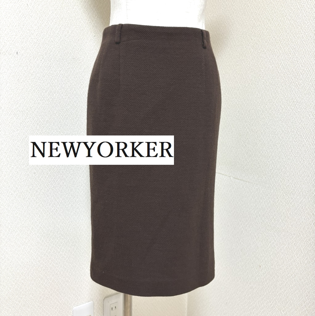 ニューヨーカーのタイトスカートお色はダークブラウンしっかり厚みのあるウール混素材少し毛羽立ちがありますがきれいです●サイズ●M ウエスト66ヒップ88丈55●素材● 毛45アクリル45ポリエステル10 裏地キュプラ100