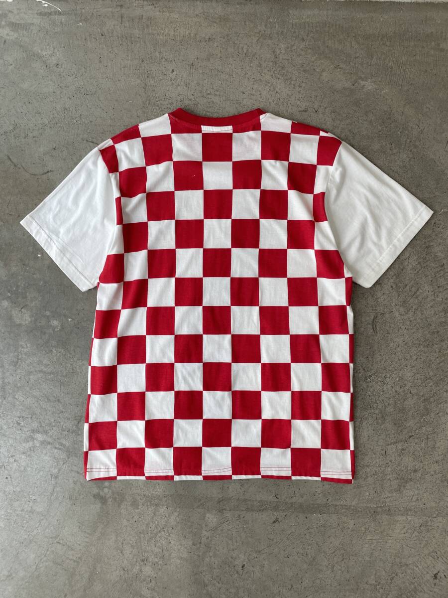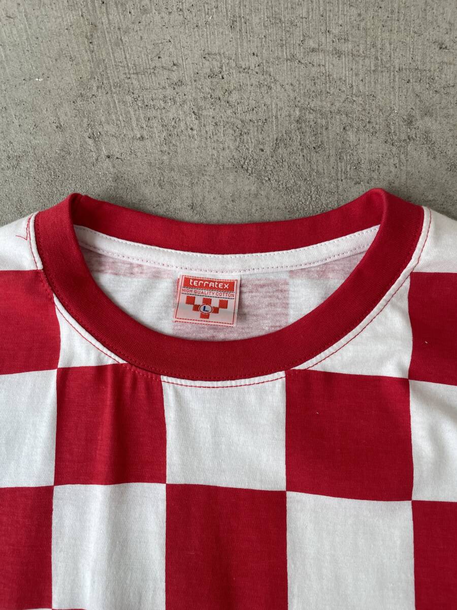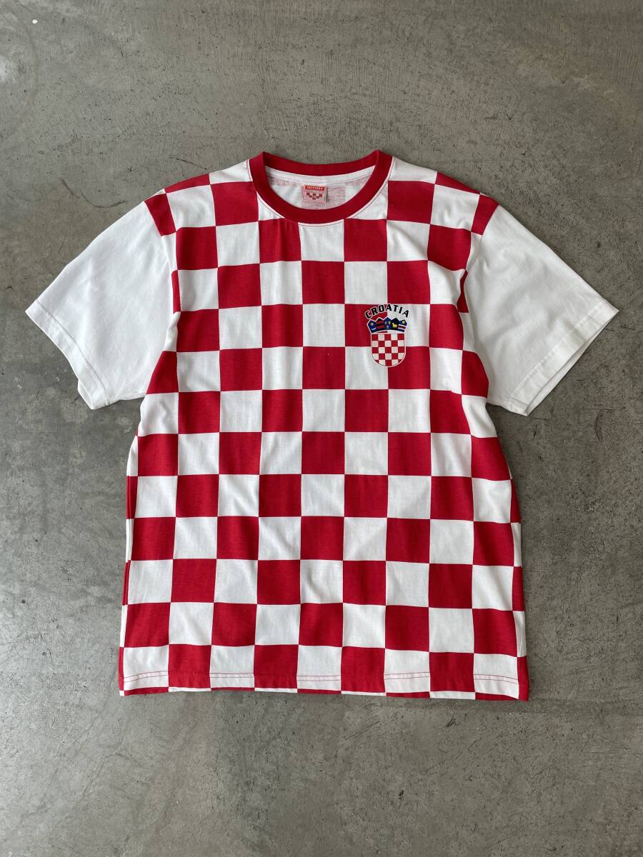 希少!美品!USA購入!80s 90s 00s CROATIA ゲームシャツ 市松柄 チェッカーフラッグ サッカー Tee プリントT 大きいサイズ(L)