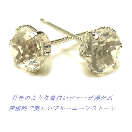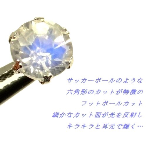 K10 ブルームーンストーン 5mm フットボールカット ピアス 10金 WG YG ゴールド ジュエリー 天然石 サッカーボール 6月誕生石 箱付き