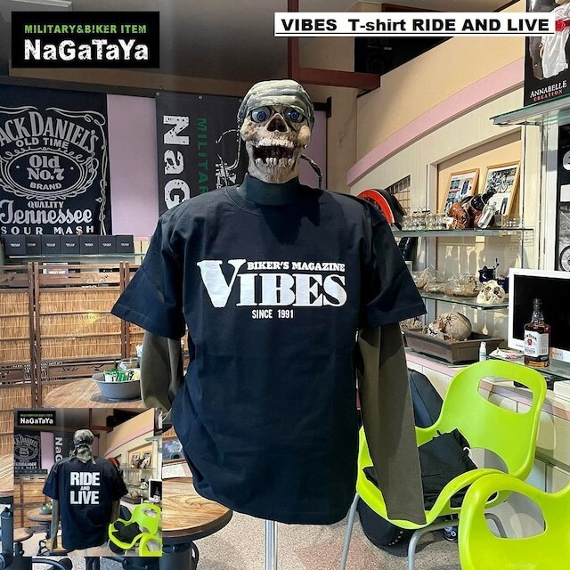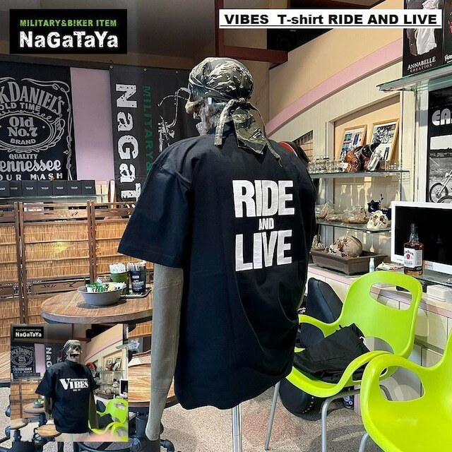 ★ VIBES バイブズ RIDE AND LIVE ライド アンド ライブ Tシャツ 6,2オンス Tシャツ メンズ BIKE バイカーウエア ★