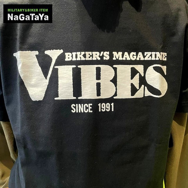 ■ 黒地に「VIBES」の白ロゴが入ったロングセラーTシャツ。