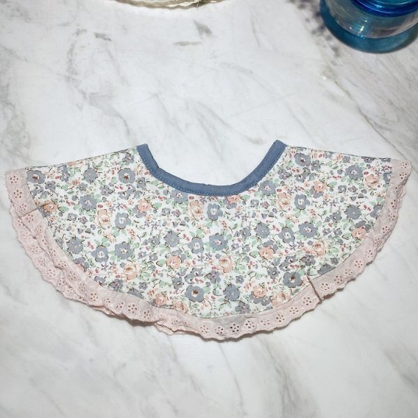♪mineka♪ベビー涎掛け スタイ 綿製 赤ちゃん お食事 エプロン ネック飾り フリル 普段着 外出 通園 遠足 花柄 ブルー カジュアル 1059