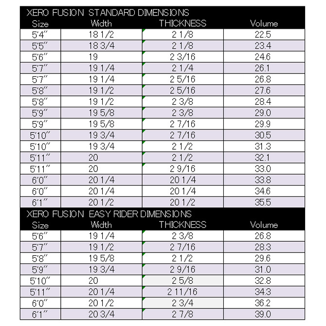 エンジンルームは、前足下のシングルコンケーブからフィンを貫くダブルコンケーブへとつながっている。このコンケーブが、重要なセクションでのリフトとコントロール性を高めている。Xero Fusionは、ベストセラーのBlak Boxモデル(同寸法)をアップデートし、モダンにアレンジしたもの。短いボードにフォームを多用したいサーファーには、操作性を維持するためにレールを低くしたEasy Riderオプションも用意されている。