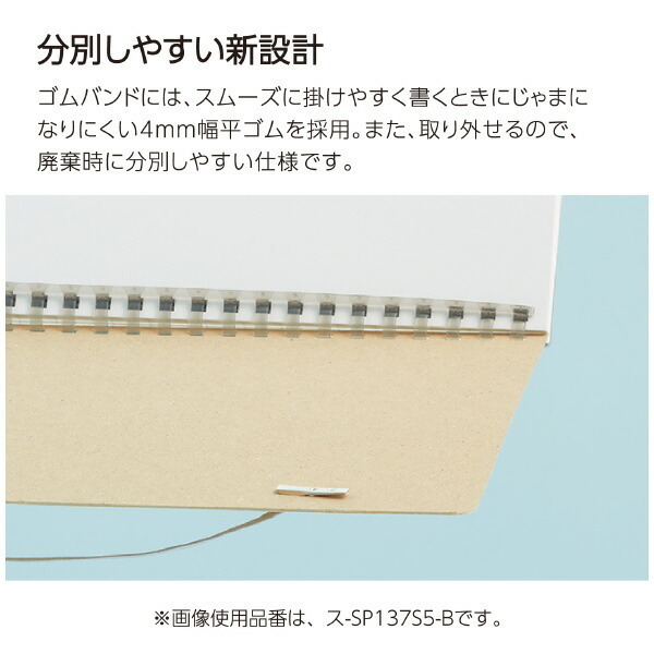 ●スムーズに掛けやすいスマートな4mm幅ゴムバンドは使用後分別しやすい設計になっています。