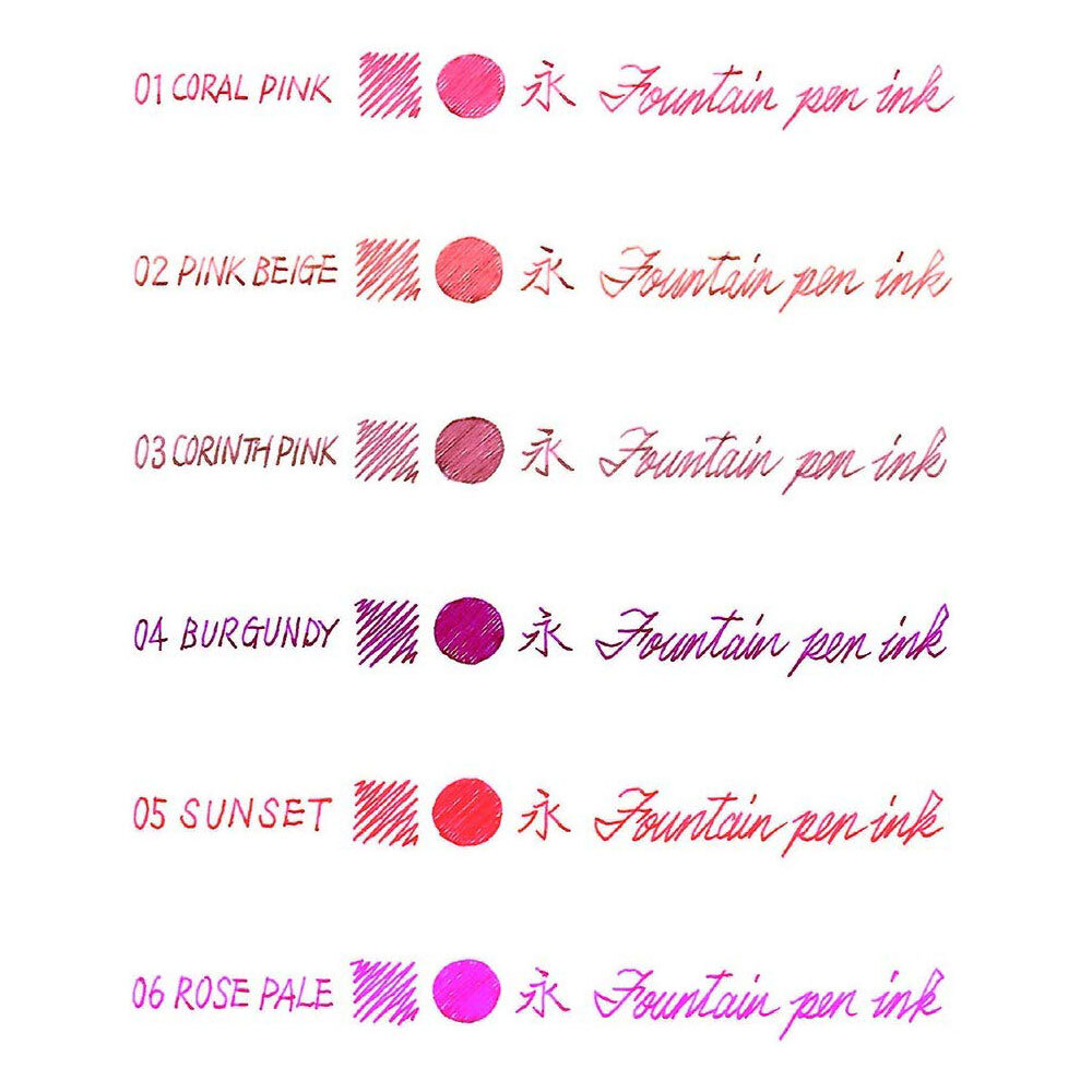 口紅のカラーバリエーションをイメージしてカラー調色した万年筆用水性染料インクです。