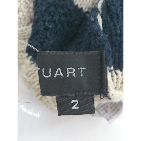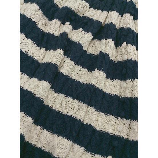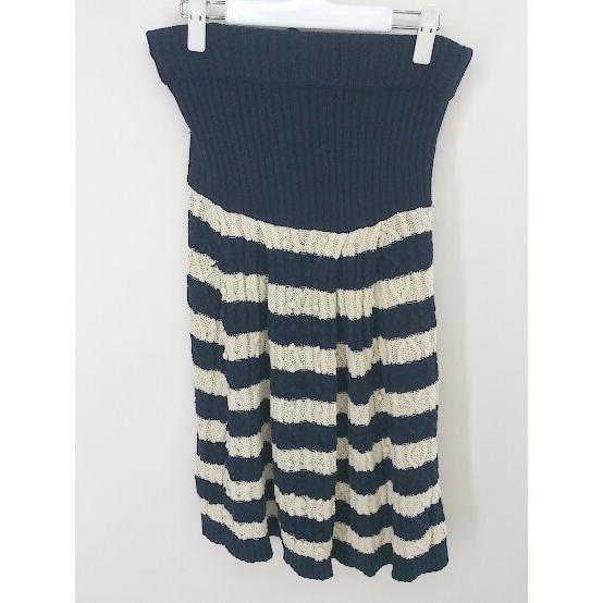 ◇ JILL STUART コットン ニット ボーダー 膝丈 フレア スカート サイズ2 ネイビー オフホワイト レディース
