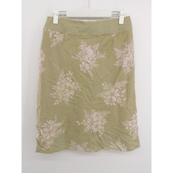◇ JILL STUART ジル スチュアート 花柄 フラワー 膝丈 フレア スカート サイズ4 ベージュ レディース P