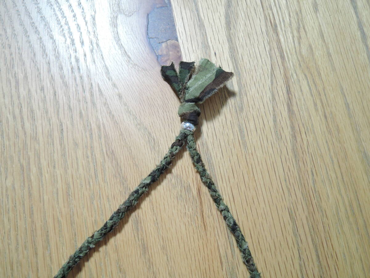 ヴィンテージライクなバンダナ生地を裂いて、4つ編みしたネックレス。