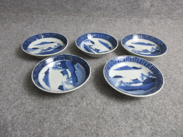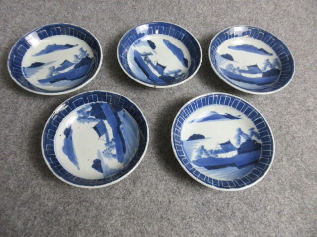 【政】33629 伊万里染付小皿 5枚 山水 有田 骨董