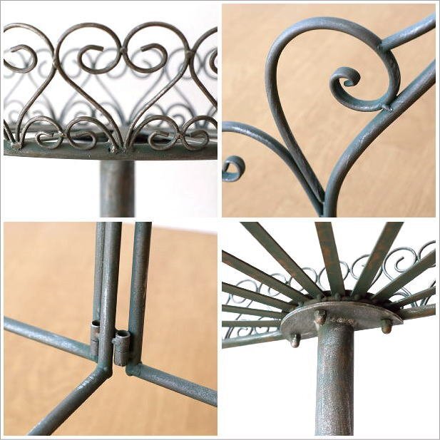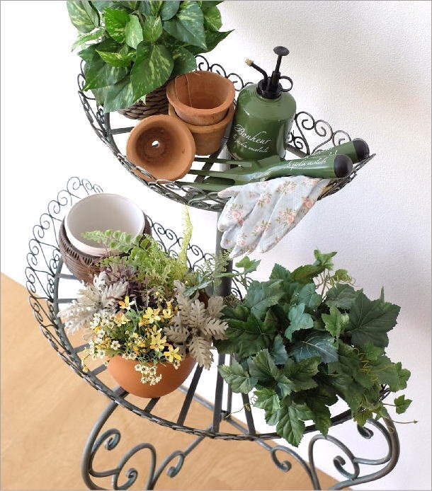| 壁やお庭の隅に置けそうな 半円のフラワースタンド 鉢物やフラワーポットを並べて ガーデンショップのようなディスプレイや 2段になったプレートで ボリュームのある飾り方が出来そうです お庭作業の ポットやジョーロ、ショベルなども置けて お洒落な空間作りにも。 商品名 : アイアンのフラワースタンド ハーフサークル 商品番号 : mty9223 全体サイズ(cm) : 幅78×奥行37.5×高さ108 トレイのサイズ(上) : 幅38×奥行21×深さ7 トレイのサイズ(下) : 幅56×奥行27.5×深さ6 トレイの空間高さ : 36 材質 : アイアン 重量 : 4kg ※お客様による簡単な組み立て品です ※商品の特製上、レトロ感を出すために錆や汚れをペイントで表現した味わいのある商品でわずかな傾きはご容赦ください ※屋外の使用では、風雨等の影響で錆が発生します。ご注意下さい ※ディスプレイによる色の違いはご了承下さい |