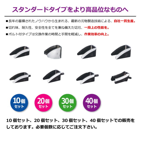 切れ味、耐久性、安全性を全て備えた切刃、い段上野性能を