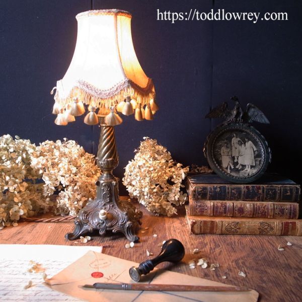 ◆Antique Rococo Style Bronze Table Lamp with Shade◆