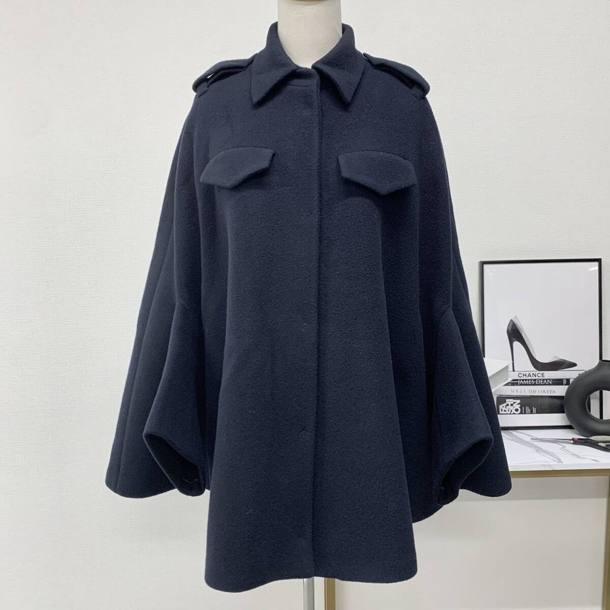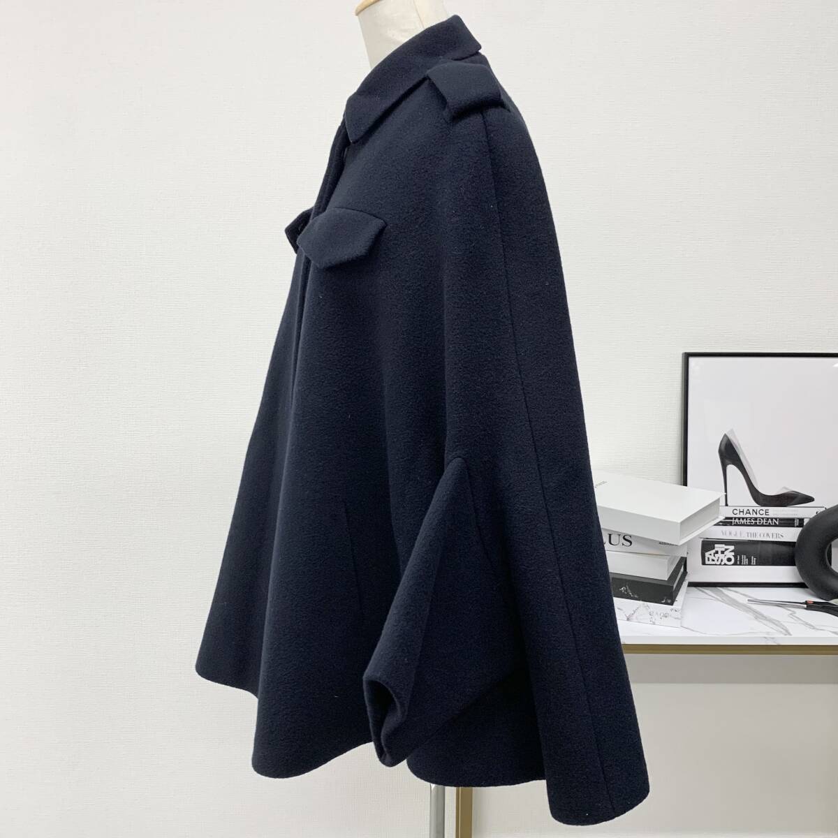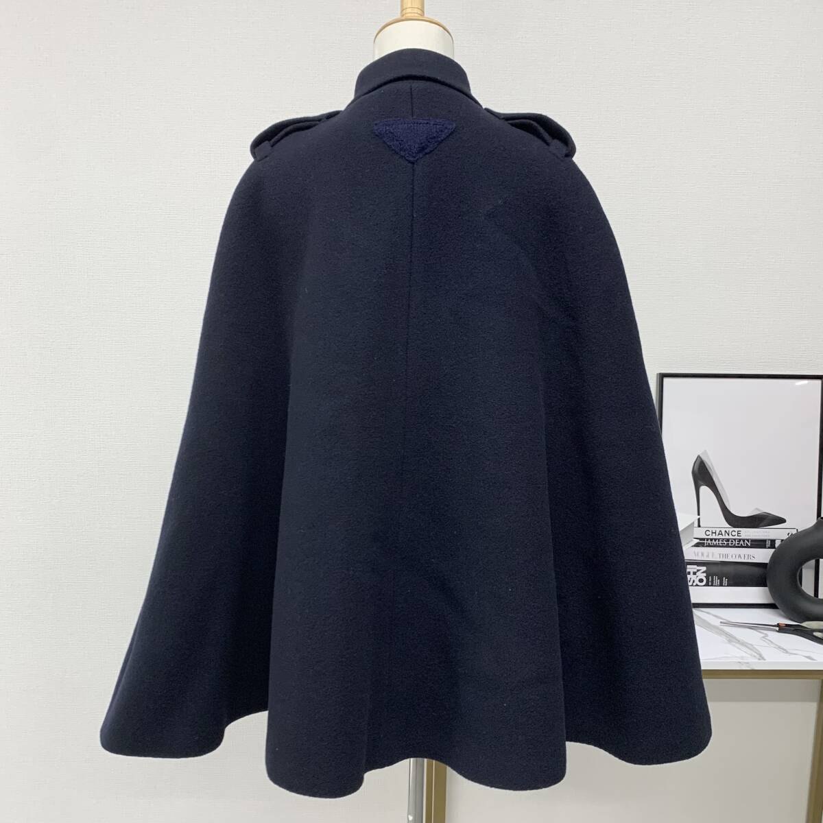 プラダ シングルブレスト キャバンジャケット トライアングル アウター ウール ポンチョ ケープ ネイビー
