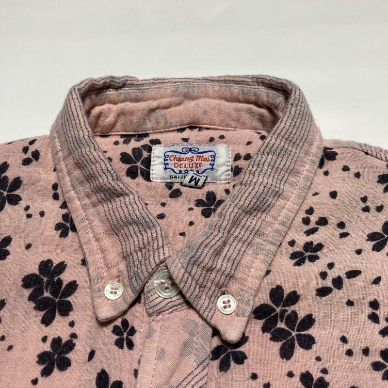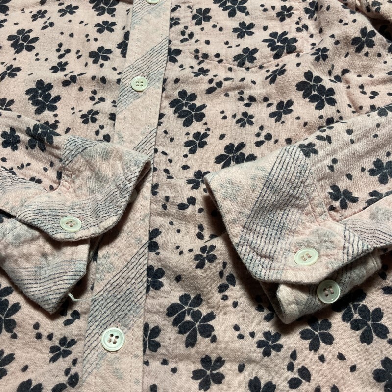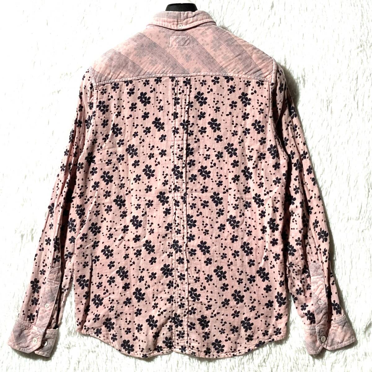 GAIJIN MADE★激レア★和の優雅★和風 花柄 桜 ダブルガーゼ 長袖BDシャツ ボタンダウン ピンク 2 M ガイジンメイド 希少デザイン