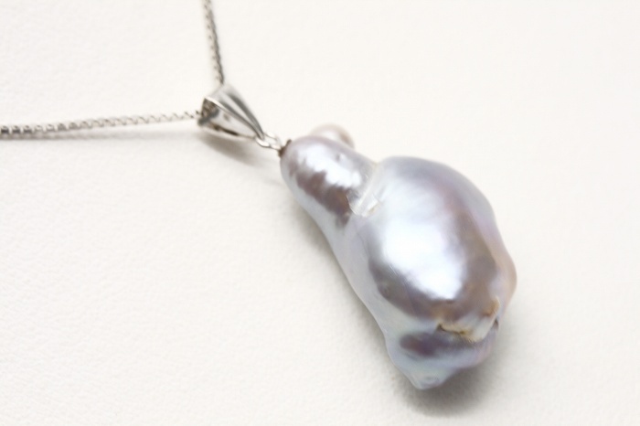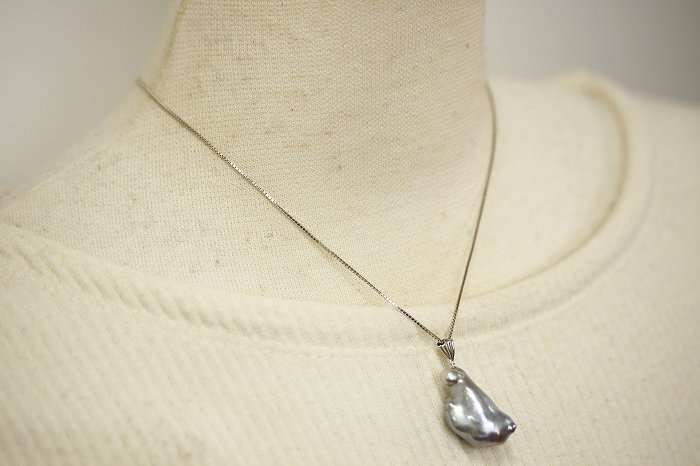 とにかくテリが凄い!タヒチバロックペンダントです。 クールなグレーのピカッとしたテリを放っています。 さらに大粒サイズですのでインパクト大です♪ シンプルなデザインですので, 様々なお洋服にコーディネートして頂けます。 | |
