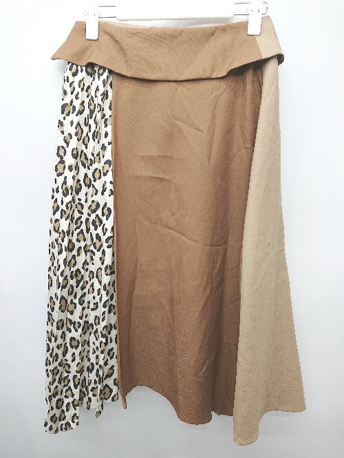 ◇ GUILD PRIME レオパード柄 切替 アシンメトリー 膝下丈 プリーツ スカート サイズ34 ベージュ マルチ レディース P