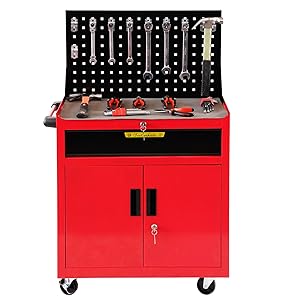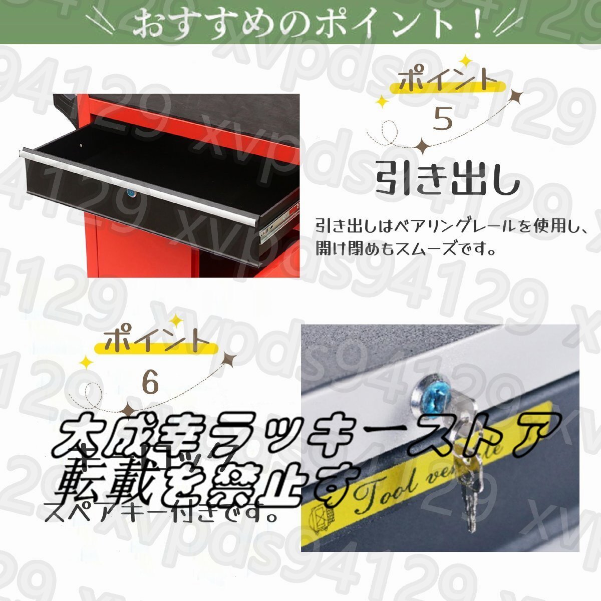 メッシュパネル・フックセットよく使用する工具が掛けられます。  |                                                         作業台一番上の天板部分は簡単な作業台としても使えます。  |                                                         マット付傷防止用のゴムマットが付いております。  |                                                         引き出し引き出しはベアリングレールを使用し、開け閉めがスムーズです。  |