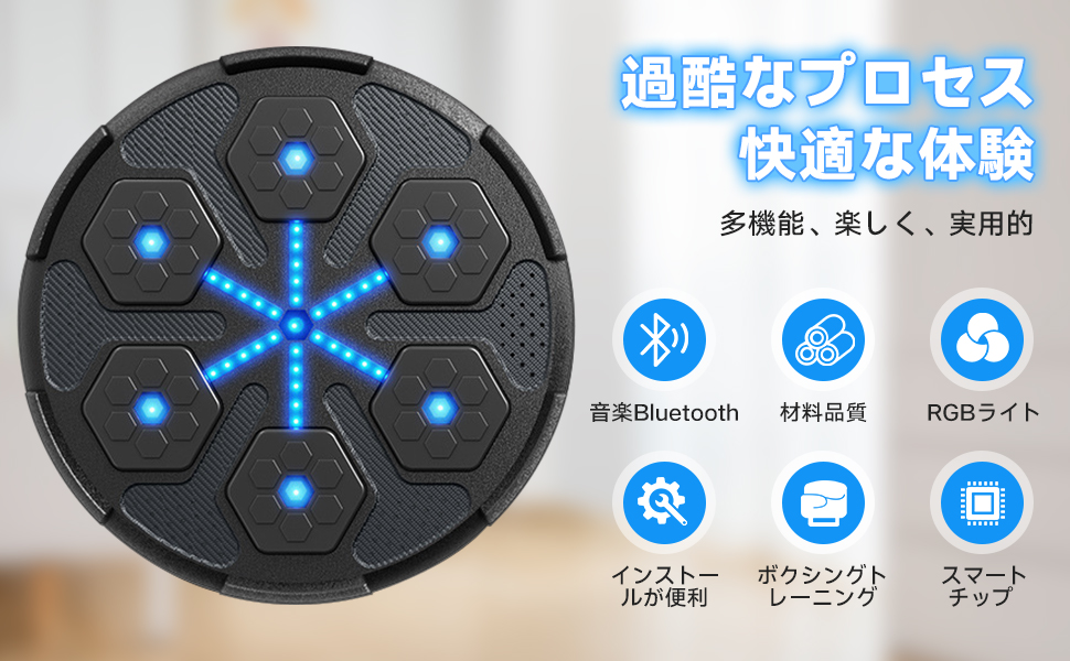 ??【面白いボクシング装置】:ゴーフのようなボクシングを試したことがありますか。ボクシングサンドバッグやボクシングウォールマットの代わりに、この壁掛け音楽ボクシングマシンは娯楽とスポーツの素晴らしい選択です。同時にあなたのニーズを満たす。手袋をはめて、ランダムなRGBランプで6つの円形領域を照らす。仕事を終えたら、面白い土竜叩きに挑戦します。ボクシング初心者、ジム、親子でのイベント、ストレス解消に最適です。