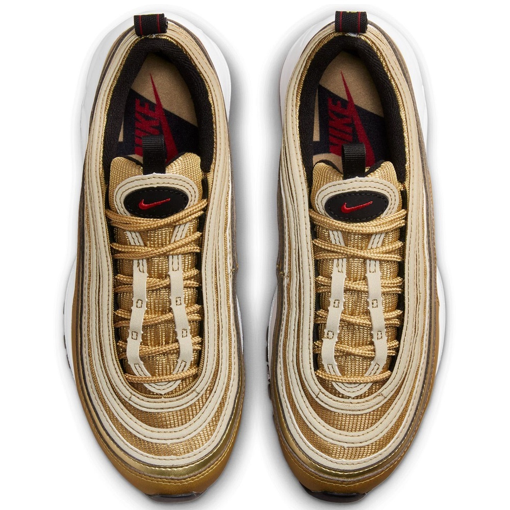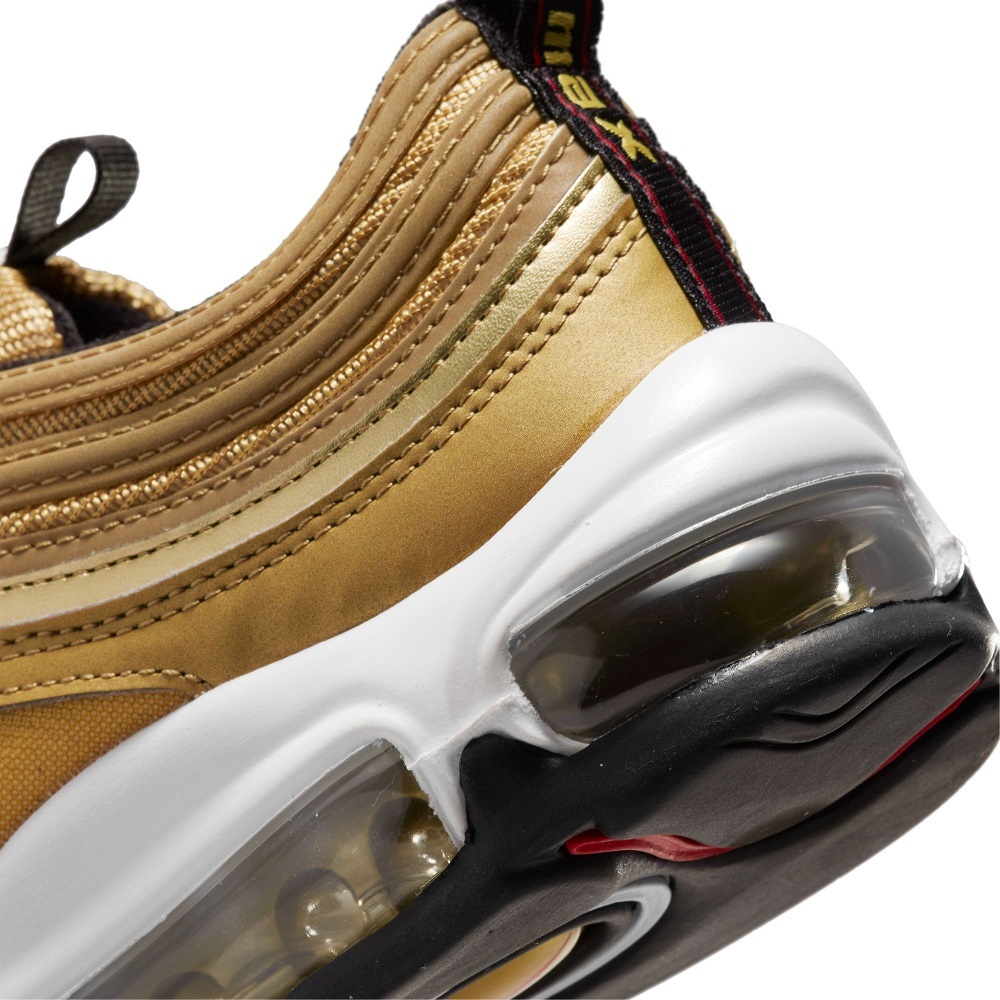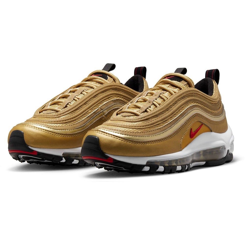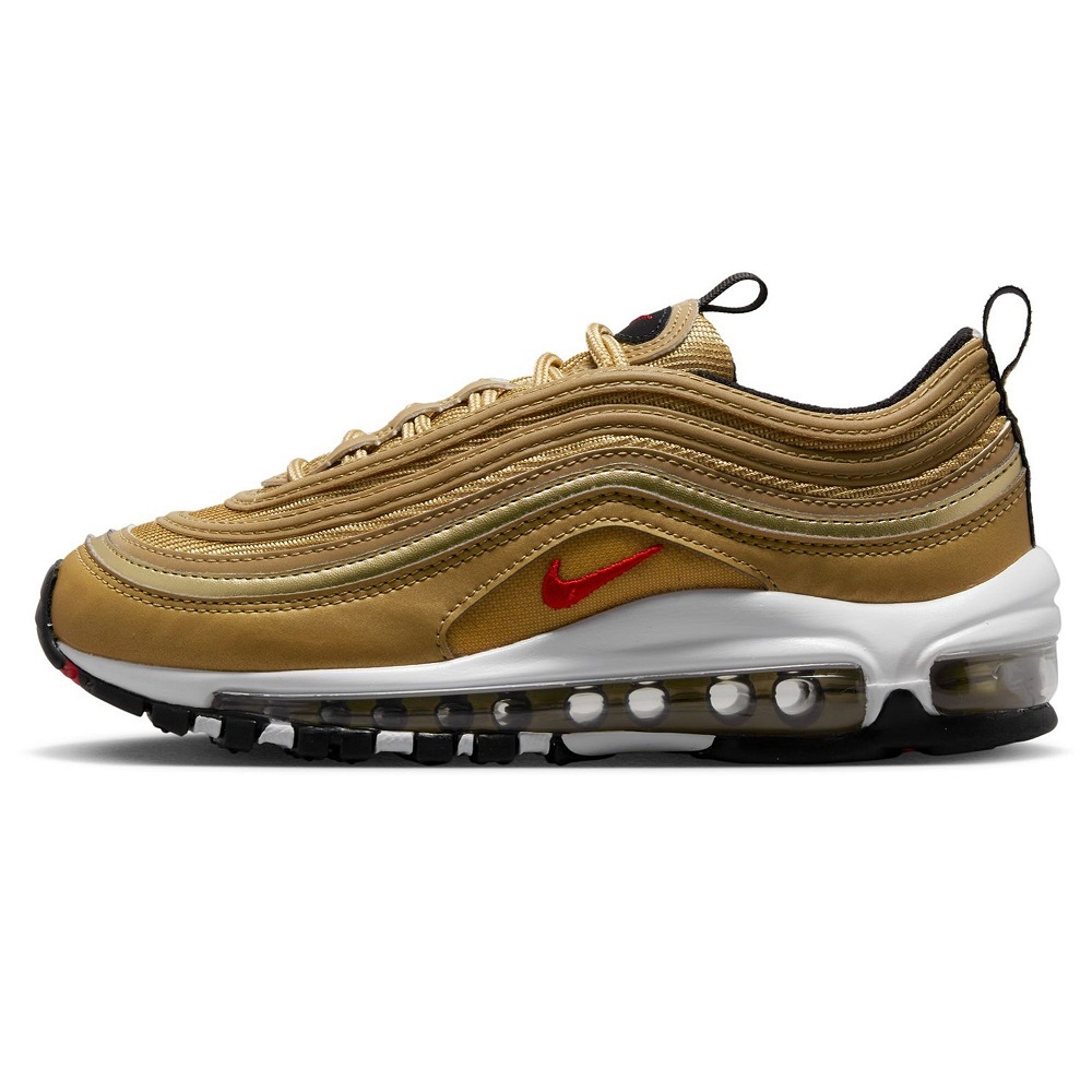 ■メーカー:NIKE ■モデル(品番):AIR MAX 97 QS GS (918890-700) ■素材:甲=合成皮革+合成樹脂+合成樹脂 | 底=合成底 ■生産国:ベトナム ■カラー:金/黒/赤 ■商品状態:新品箱無し ■サイズ:JPN 25.0cm | US 7Y ◆サイズ構造について◆ 同社のGSスニーカーとしては標準的な構造だと思います。 GSとはGrade Schoolの略でNIKE が作ったジュニアモデル用語です。 ジュニアモデルですがレディースモデルと同等な感じのサイズ構造だと思います。 サイズ感はあくまで出品者の感覚です。サイズ感に関しましては個人差が御座います。 ■特徴 1997年発売のフルレングスのビジブルエアを初搭載したAIR MAX 97のGSモデル。 今作は1999年発売に発売されたゴールド(金色)Aの復刻版。 日本の新幹線からインスピレーションを得たアイコニックなリップルデザインを採用。 フルレングスのAIRユニットでトップクラスの快適な履き心地を実現。 オリジナルモデルの流れるようなスタイルを継承しながら快適さと耐久性を向上。 ■備考 ◎国内正規代理店の商品です。 ◎基本的に画像に有るものが全てとお考え下さい。 ◎箱無し保管のためソールに白い部分が有るモデルは少し汚れている場合が御座います。 ◎些細な汚れも気になるような方は入札はしないで下さい。 ◎箱無しのため箱無し梱包発送となります。輸送過程で少し傷が付く可能性が御座いますがご了承下さい。 ◎可能な限り実色を再現しておりますがディスプレイ機器や観覧環境で色合いが異なる場合が御座います。 ◎カラーが気になる方は品番をネット検索して他の商品画像の色合いも確認してみて下さい。 ◎製造過程で生じた・縫製のズレ・些細な汚れ・些細な傷・少量の付着接着剤が有る場合が御座います。