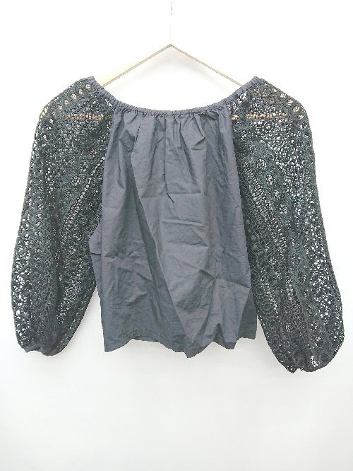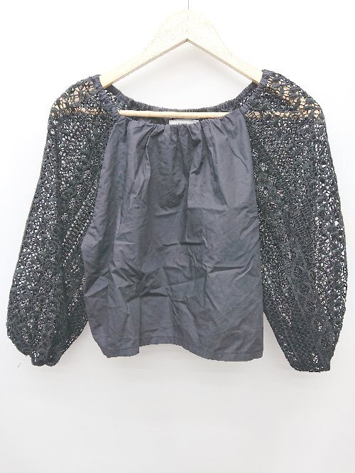 ◇ AZUL BY MOUSSY アズールバイマウジー 袖レース 透け感 長袖 ブラウス カットソー サイズS ブラック レディース P