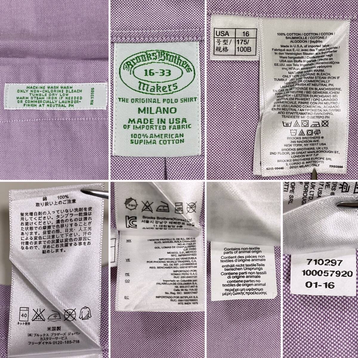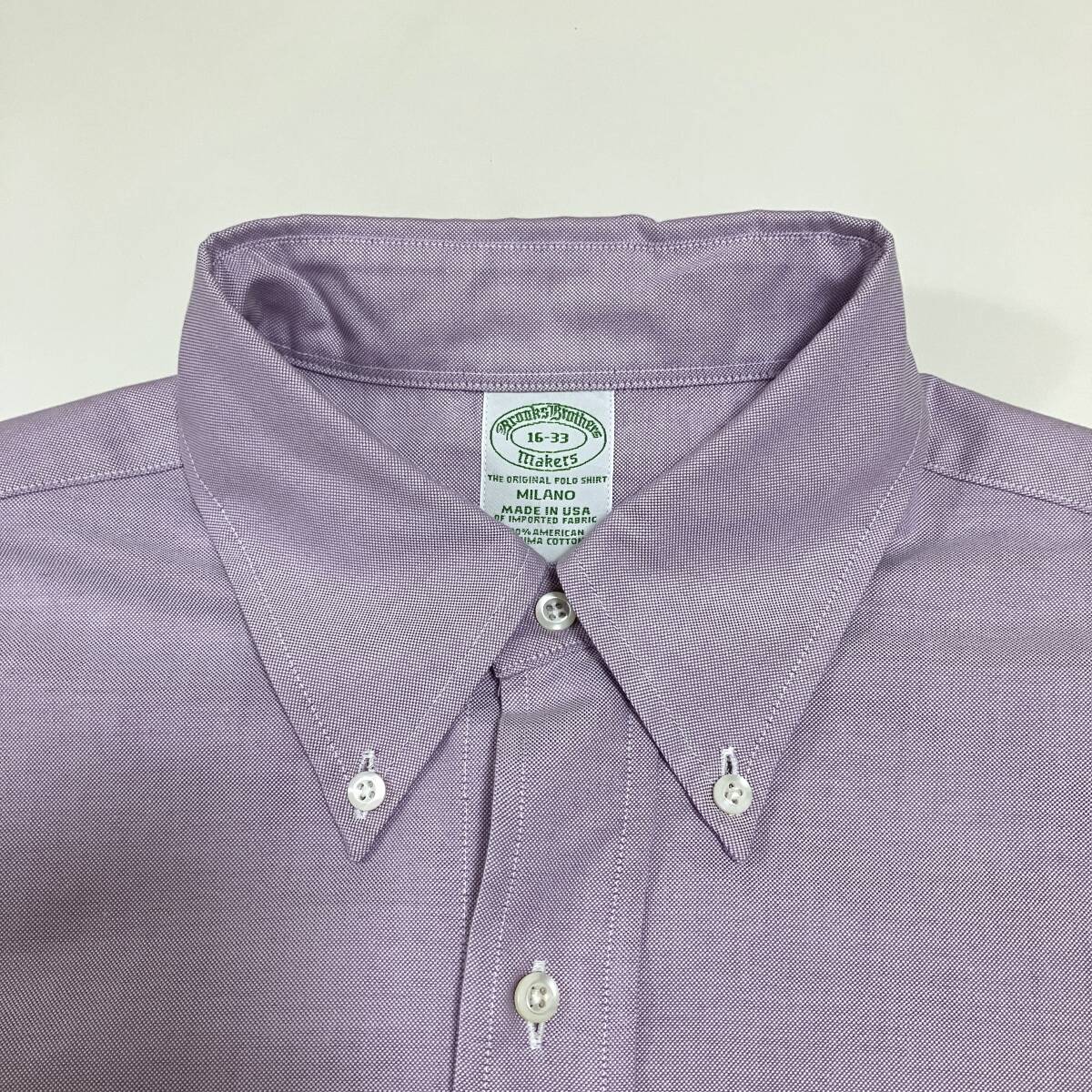 USA製 Brooks Brothers オックスフォード ボタンダウン 長袖 シャツ マチ付き 紫系 16サイズ ブルックスブラザーズ 4070175
