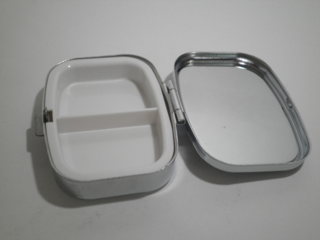 サイズ4X5.5X1.5(高さ)cmの、金属製スクエア型ピルケースに、レジン加工しました。