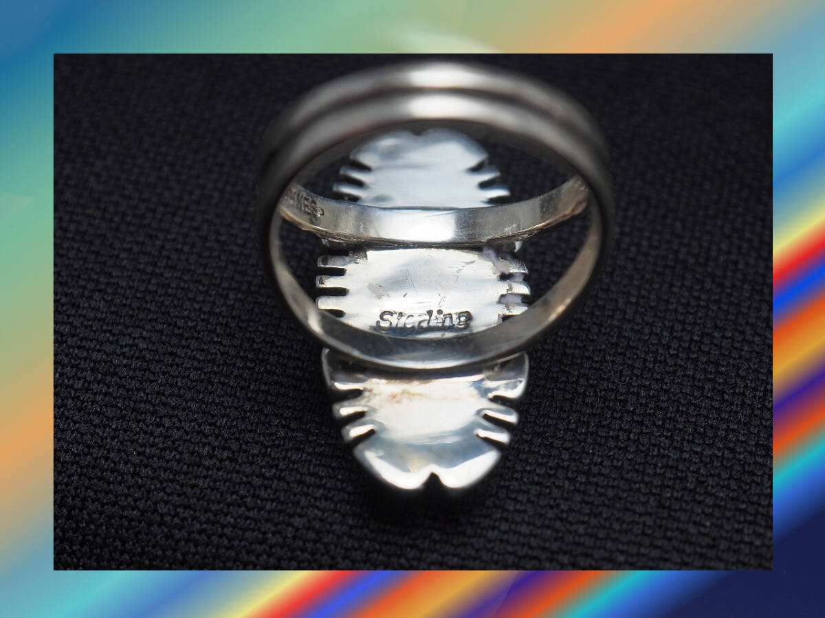 ※インディアンジュエリーの偽物が出回っていますが、インディアンジュエリーと名乗れるのはアメリカの法律では【アメリカインディアン作家による作品】のみで、この作品は本物のインディアンジュエリーです。
