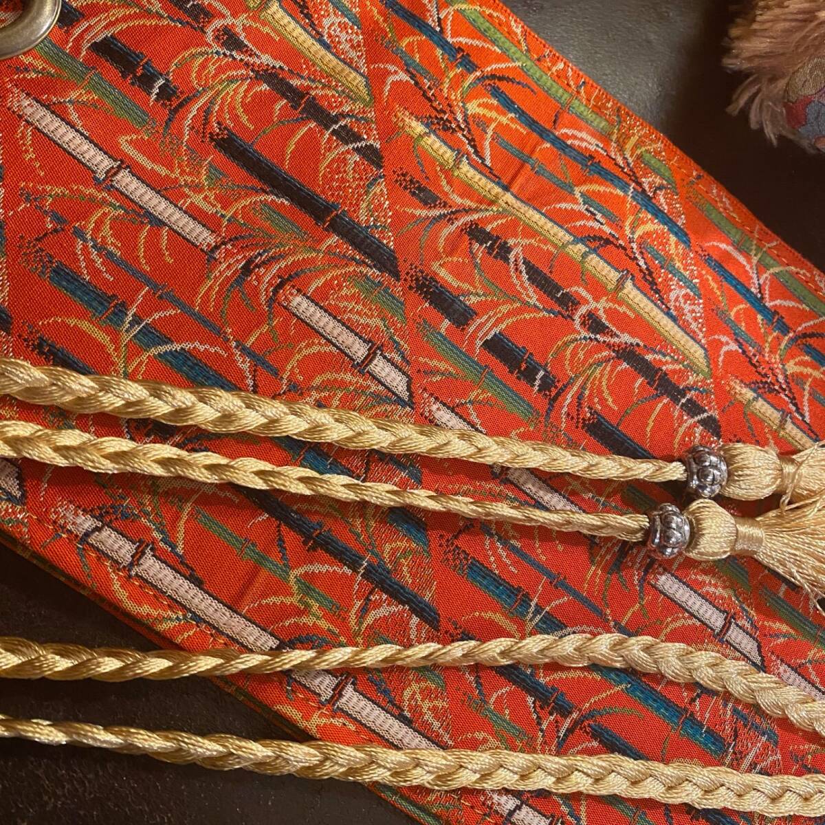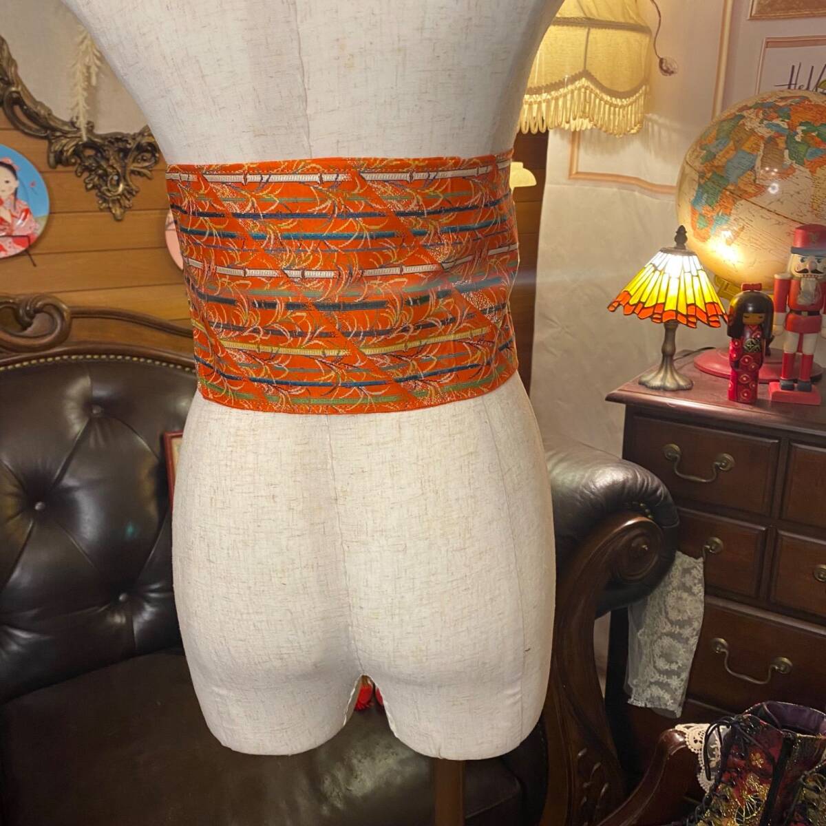 【 和洋折衷 レトロ 古着 八寸名古屋帯 着物 和装 リメイク サッシュベルト ウエストマーク ハンドメイド OB-22 】