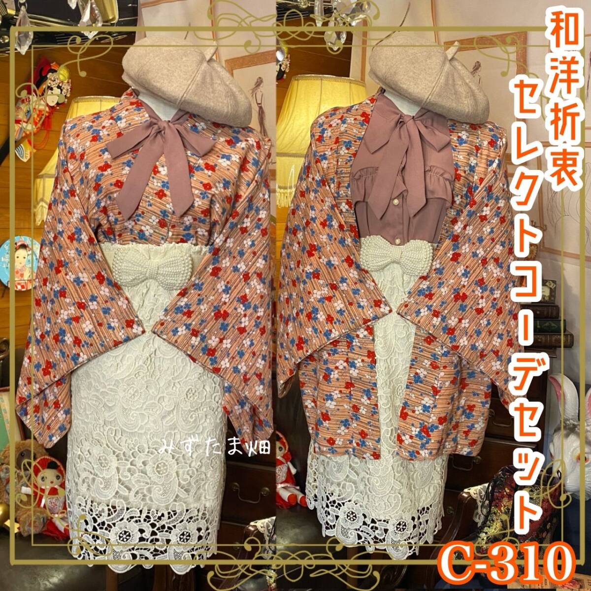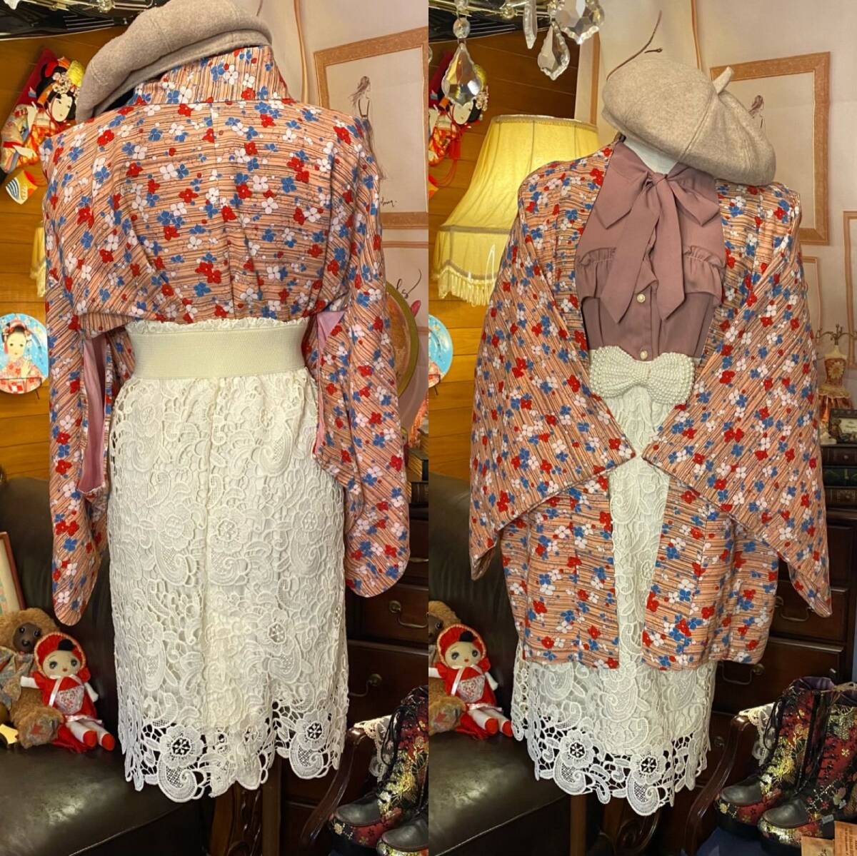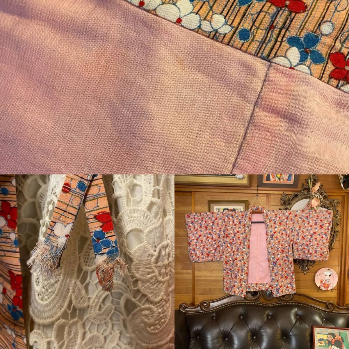 【 和洋折衷 セレクト まとめ売り コーデ レトロ クラシカル 古着 和装 羽織り 可愛い和花柄×ピンク×アイボリー 系 4点セット C-310】