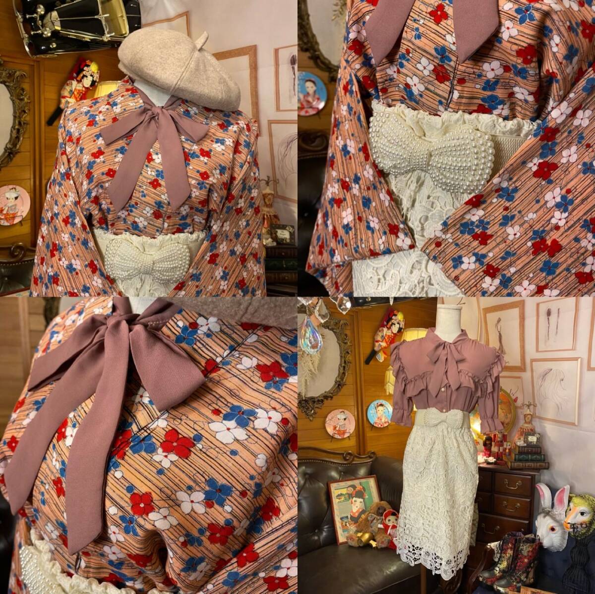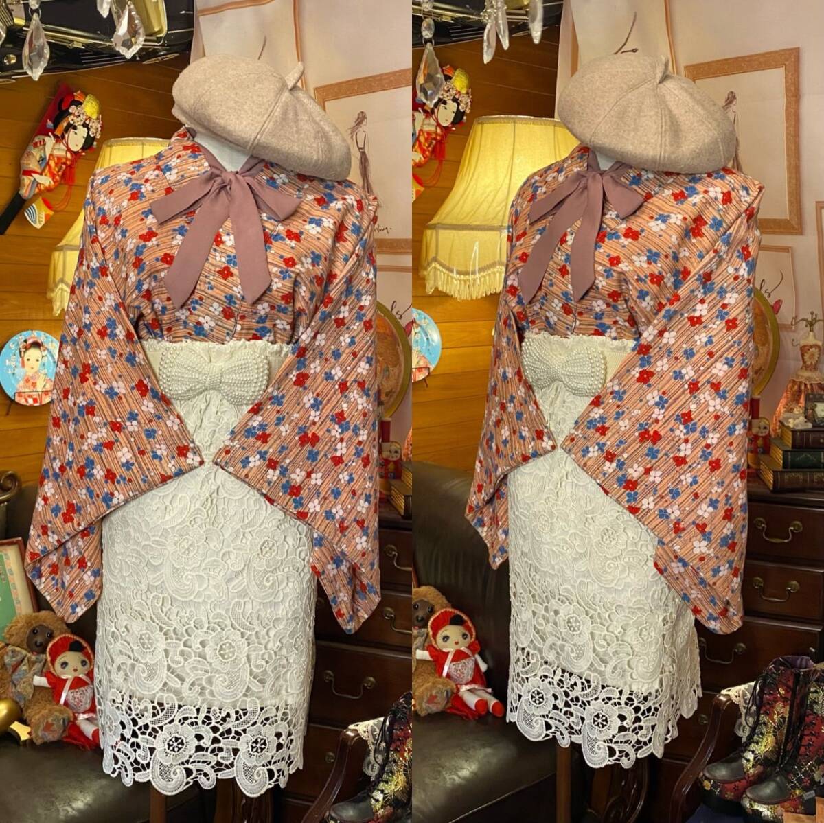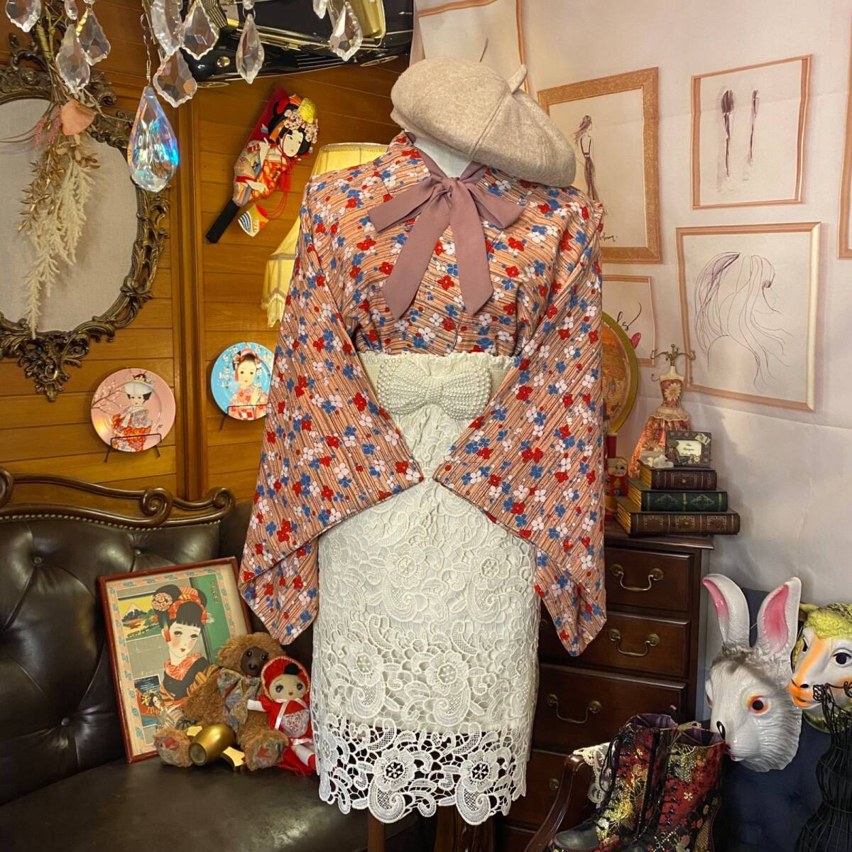 【 和洋折衷 セレクト まとめ売り コーデ レトロ クラシカル 古着 和装 羽織り 可愛い和花柄×ピンク×アイボリー 系 4点セット C-310】