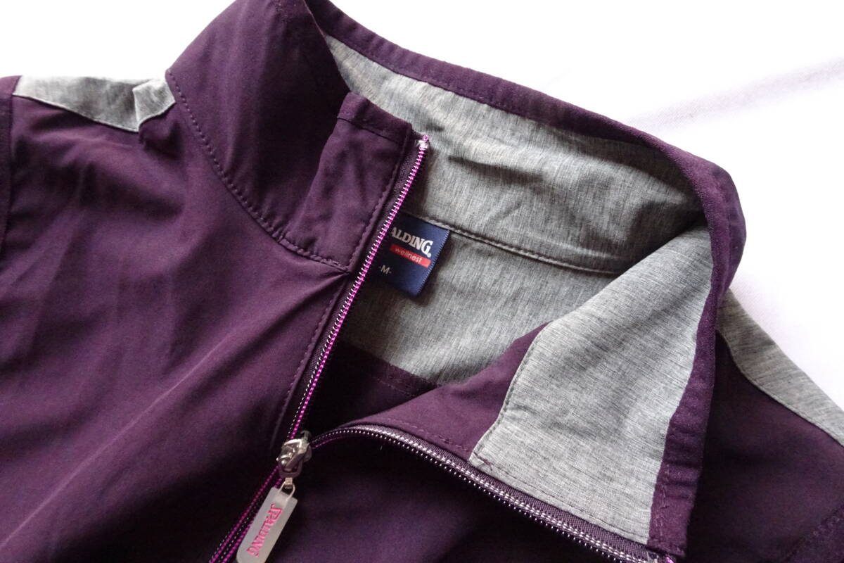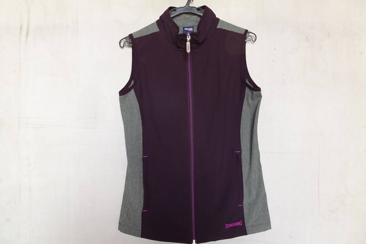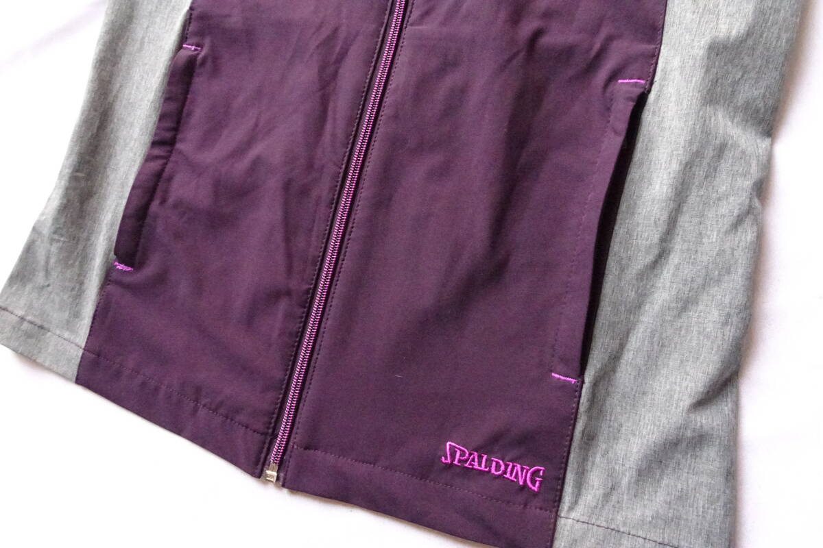 SPALDING/スポルディング/スリーブレスジャンパー/ベスト/スタンドカラー/前ジップアップ/グレー杢切替/紫/パープル/Mサイズ(7/19R)