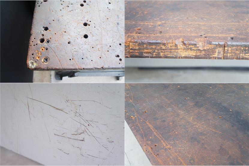 傷、汚れ、変色、錆、亀裂、反り、鉄脚の歪み等