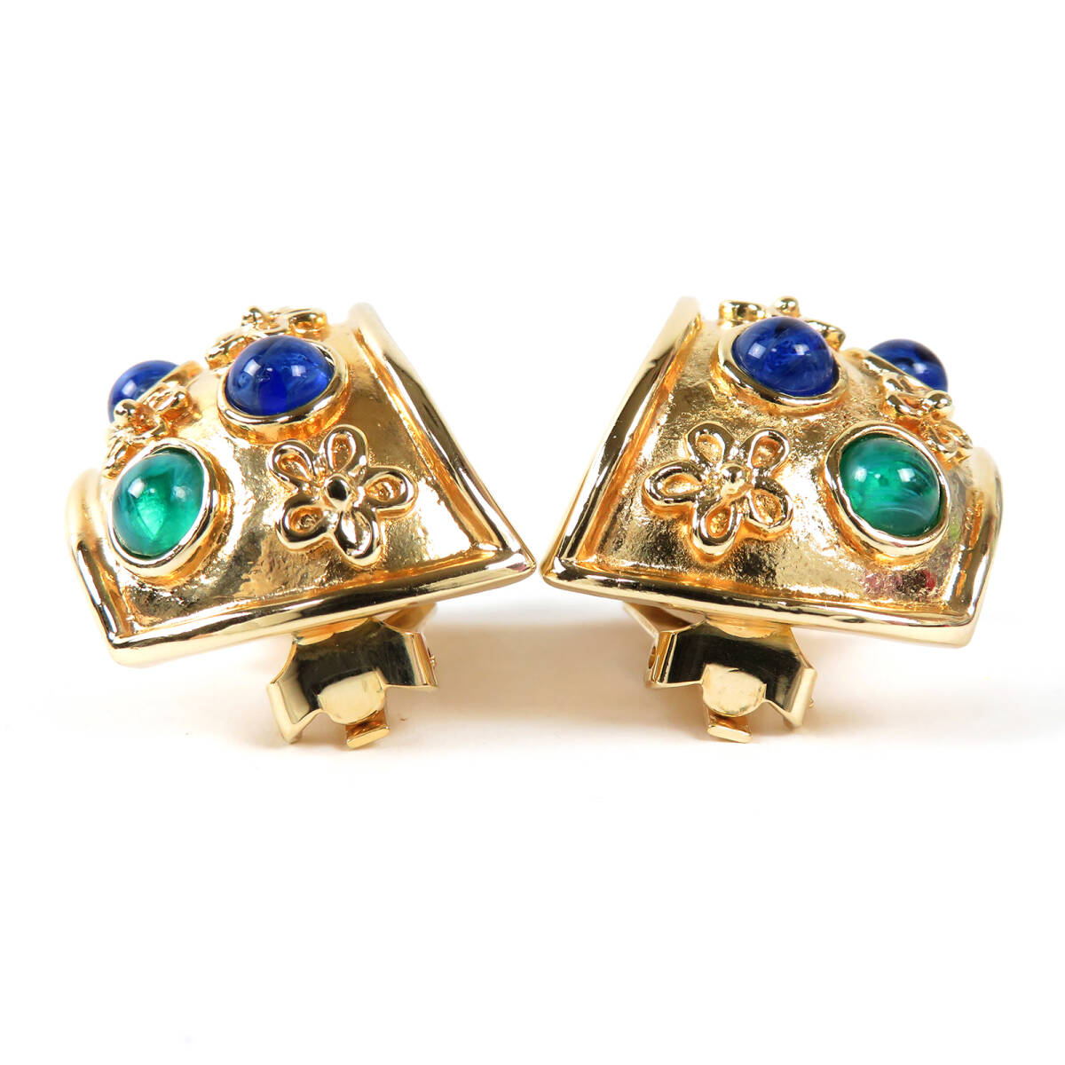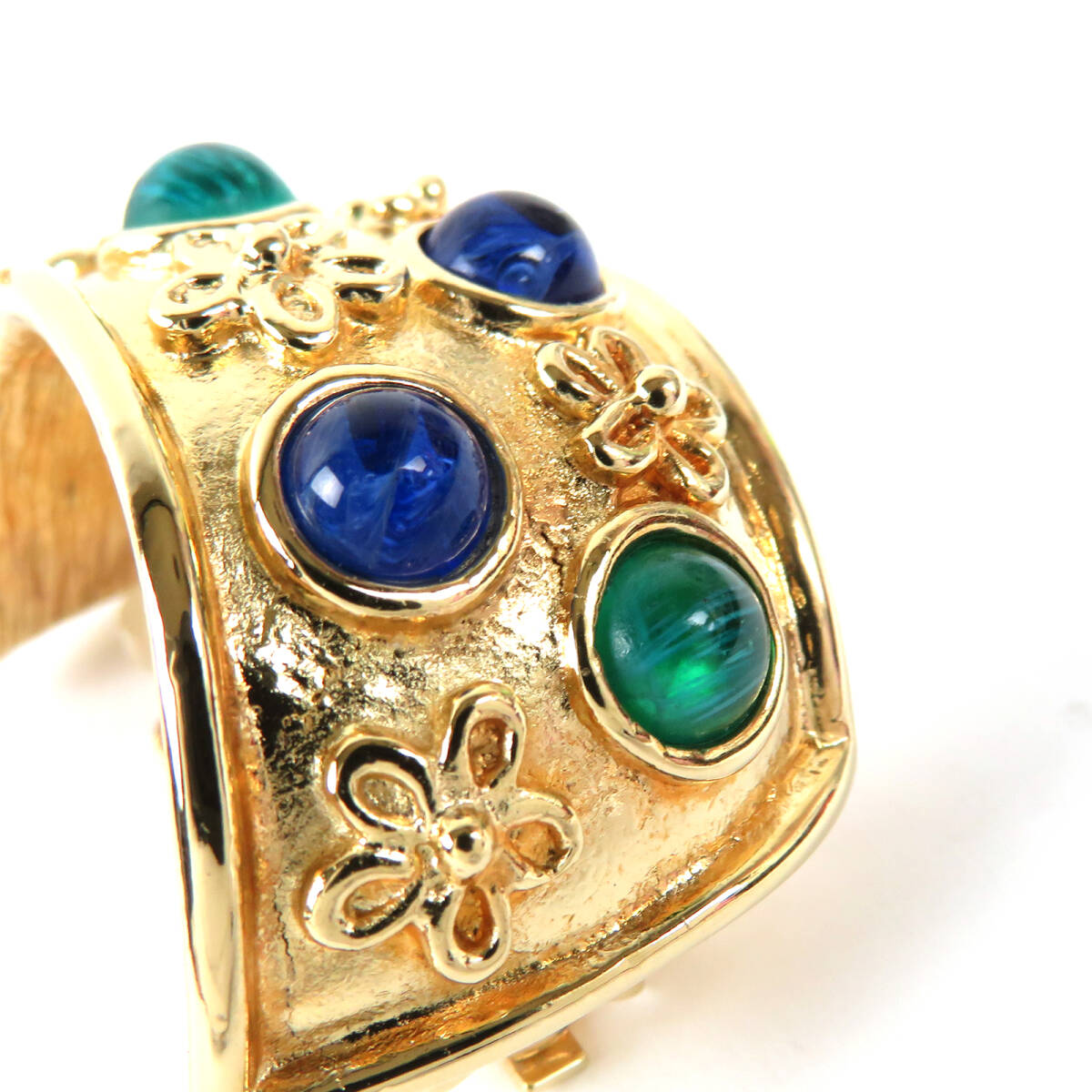 Christian Dior クリスチャンディオール 大きめ カラーストーン フラワー イヤリング ゴールドカラー ブルー グリーン ヴィンテージ ビッグサイズ |