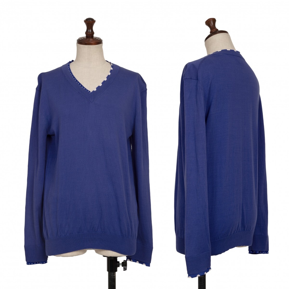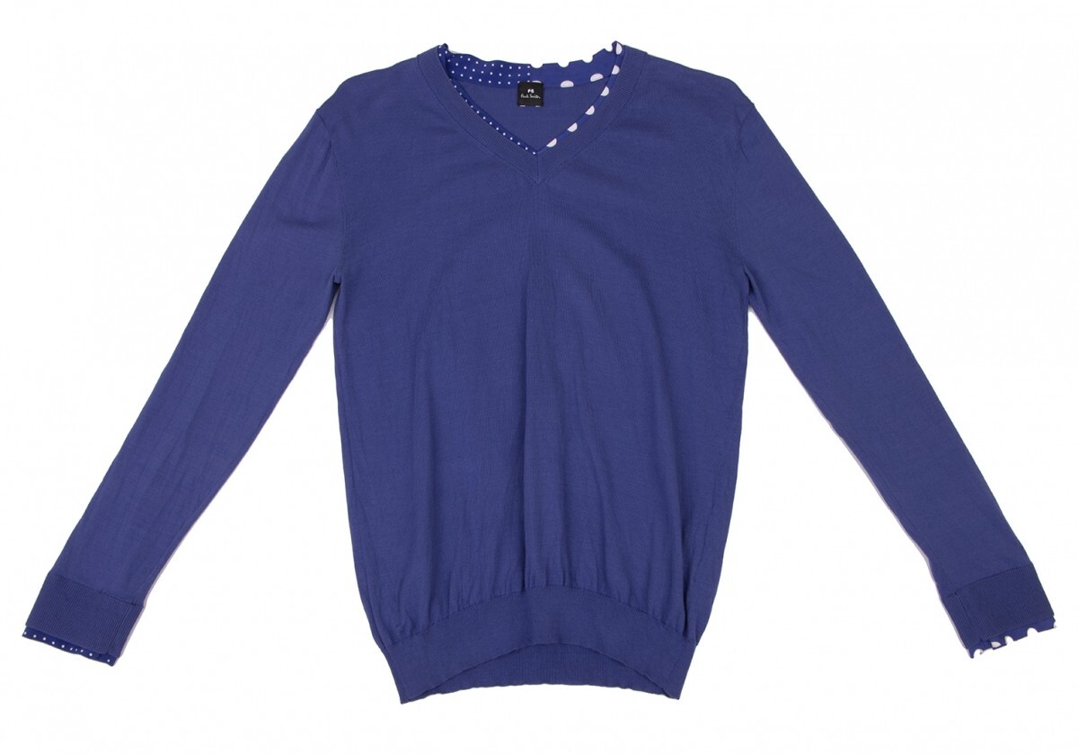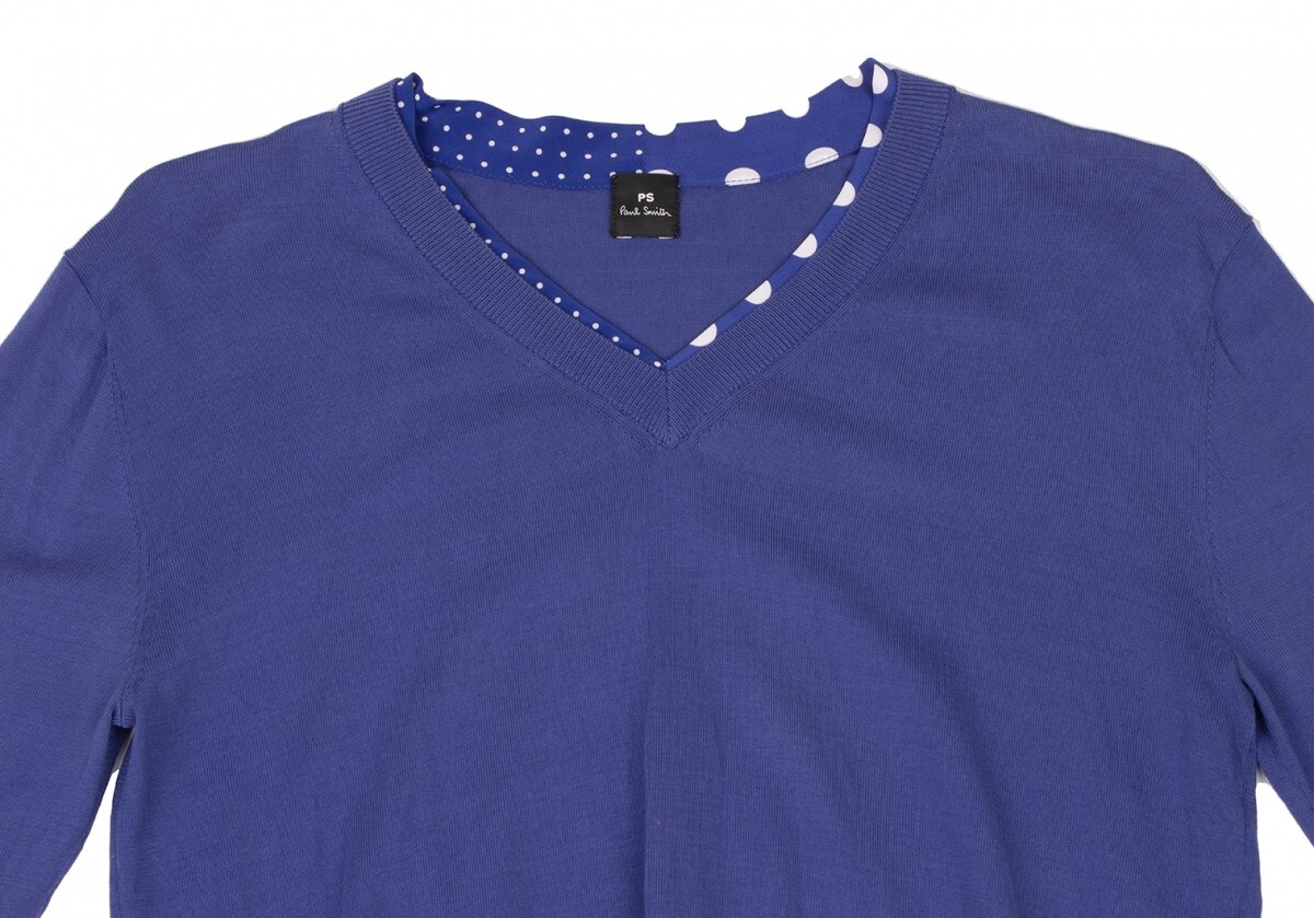 ポールスミスPaul Smith PS コットンシルクドットレイヤードVネックニット 青M |