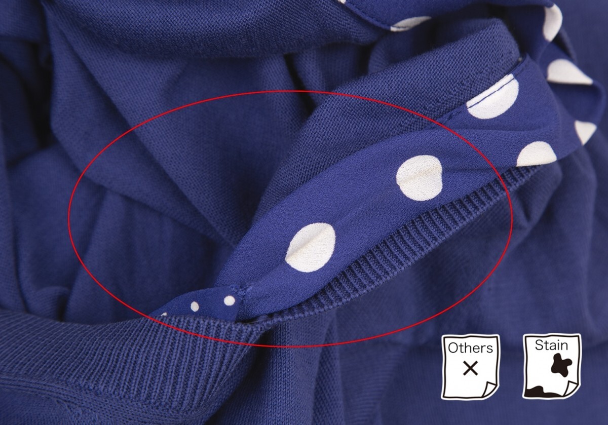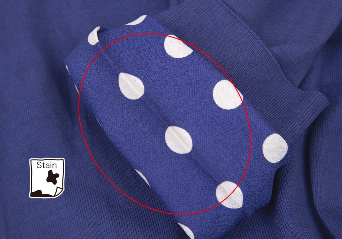 コンディション | 首元にダメージ・汚れ、左袖先に汚れ・糸引き、右袖に薄シミがあります(写真参照)。その他目立ったシミ、汚れ、ほつれ等ない状態です。クリーニング済み ※商品の詳細写真はこちらよりご確認頂けます。 | ||||||||