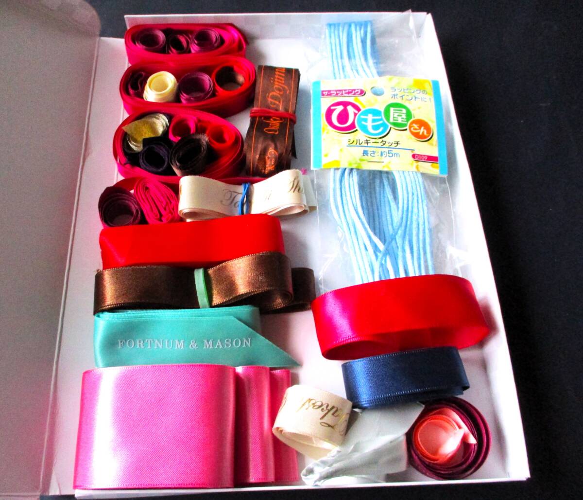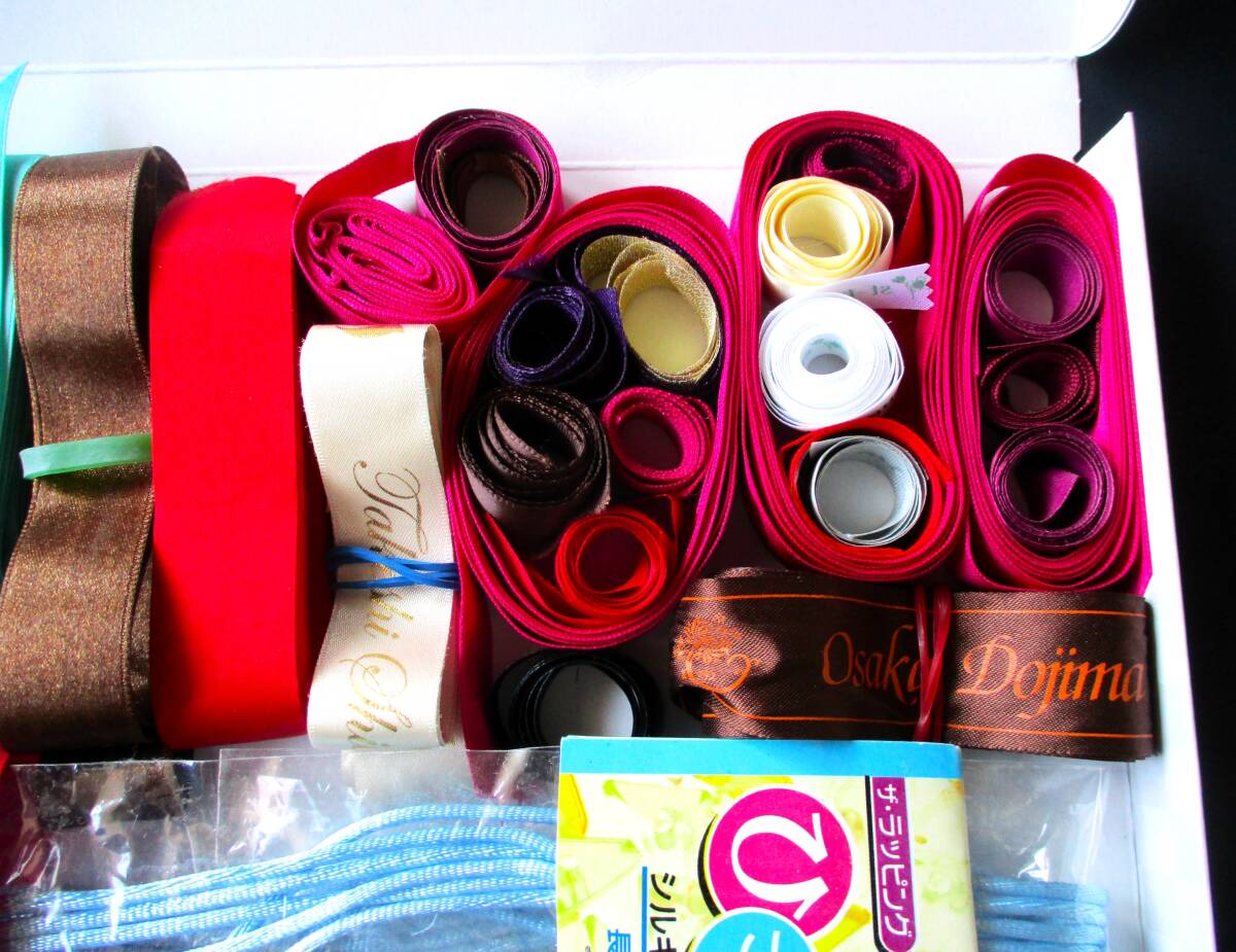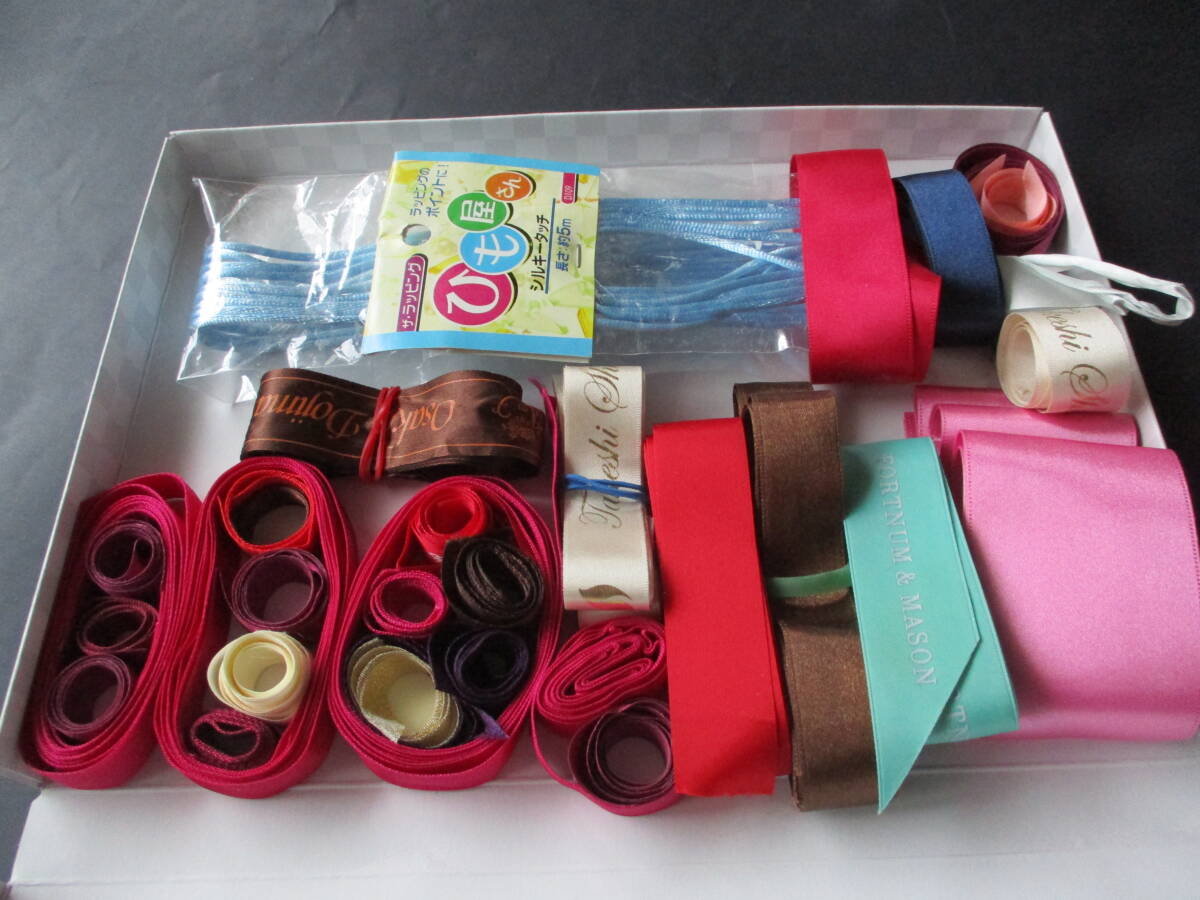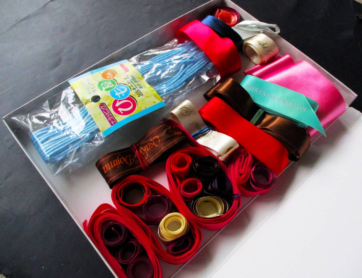 ■贈答品についており捨てることができないまま保管していたリボンと未使用のラッピング素材の紐のセットです。