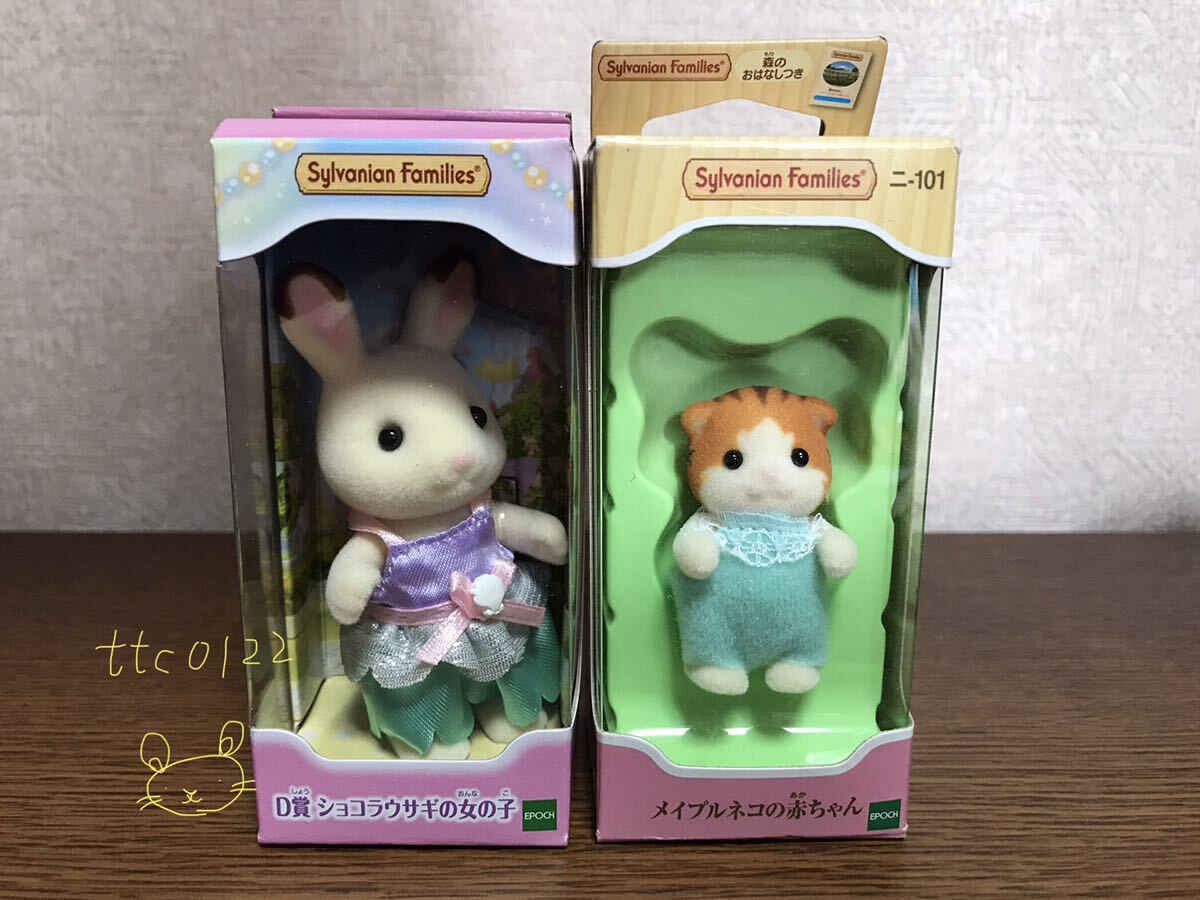 未使用 シルバニアファミリー 【D賞 ショコラウサギの女の子,ニ-101 メイプルネコの赤ちゃん 2種セット】送料300円