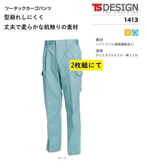 ビックイナバ特価◆TSDESIGN 1413[秋冬]カーゴパンツ【32サーフ・W115cm】ソフトツイル素材・定価1枚8250円の品、2枚即決2980円
